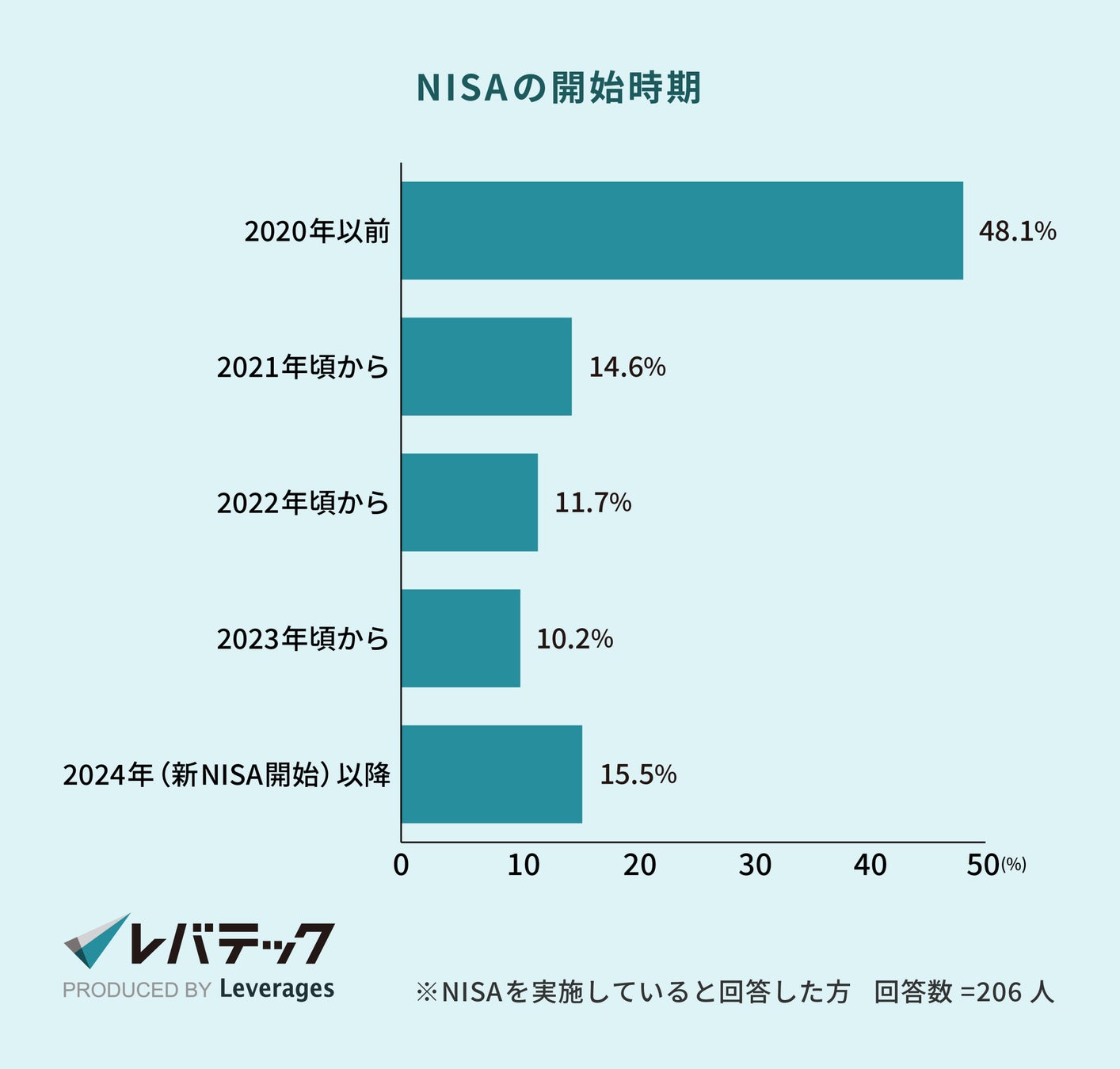 NISA利用者のうち、2020年以前から開始した人が48.1%と最も多く、「新NISA」開始前からNISAを利用していた正社員IT人材は約85%にのぼりました。