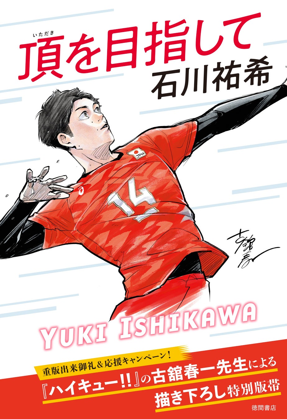 7月12日(金)頃からは、大人気漫画「ハイキュー!!」作者の古舘春一先生が躍動感あふれる石川選手を描き下ろした特別全面帯バージョンが順次展開して参ります。