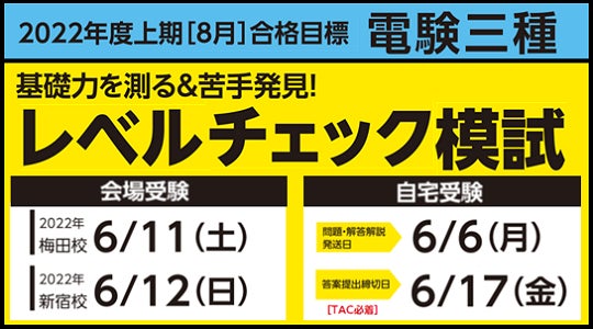 資格の学校TACでは、2022年度上期合格目標「電験三種 レベルチェック模試」を新規販売開始、2022年4月1日(金)より申込受付を開始しました。