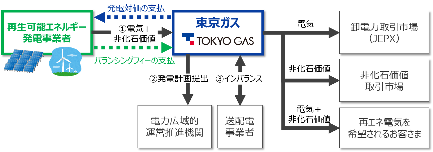 東京ガス株式会社(社長:内田 高史、以下「東京ガス」)は、再生可能エネルギー(以下「再エネ」)電源の普及・拡大を目指し、非FIT/FIP[*1]再エネ電源を取り扱う再エネ発電事業者(以下「再エネ事業者」)向けの需給調整サービスを本日より開始します。