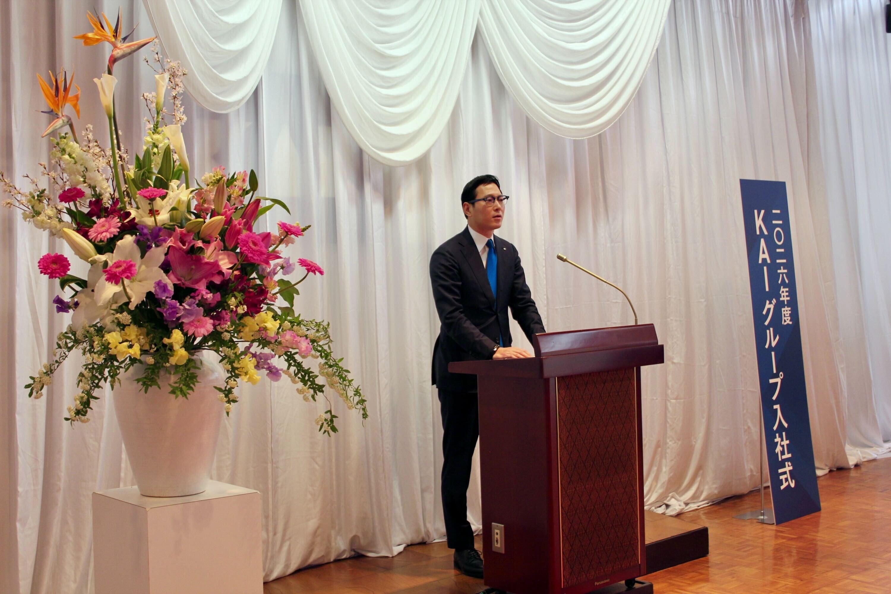1年は短く、新入社員としての1年もあっという間に過ぎていきます。ぜひ1日1日をしっかりと積み重ね、これから一緒にKAIグループのさらなる成長・発展を支えていただけるようお願い申し上げまして、私からの皆さんに対する入社の歓迎の挨拶に代えさせていただきます。改めまして、ご入社おめでとうございます。