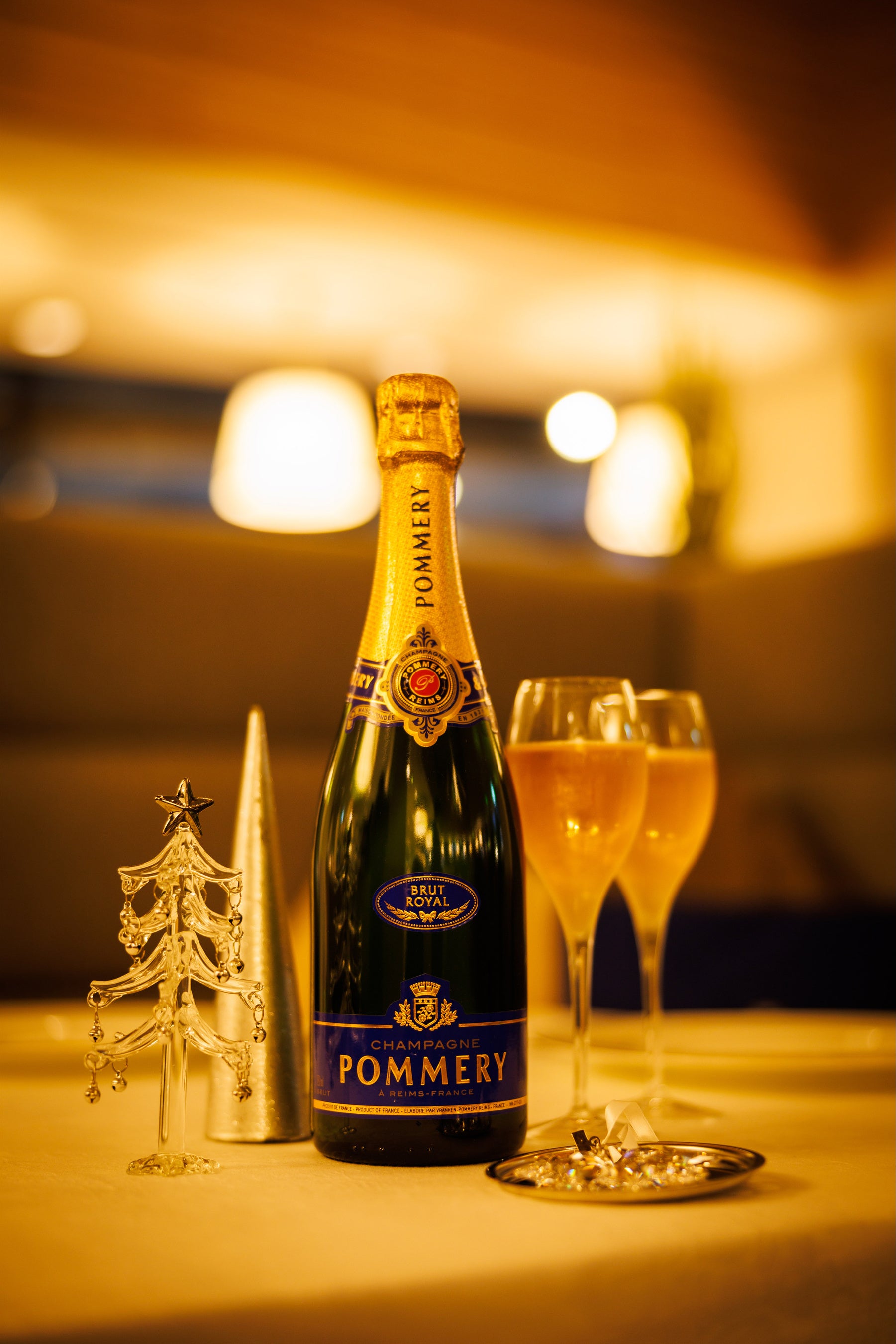提供するのは、AOCシャンパーニュである「ポメリー ブリュット・ロワイヤル」。生き生きした泡立ちが魅力的で、全体的にフレッシュ感があり、 洗練された口当たりです。ホリデーシーズンにふさわしい、華やかな味わいが楽しめます。