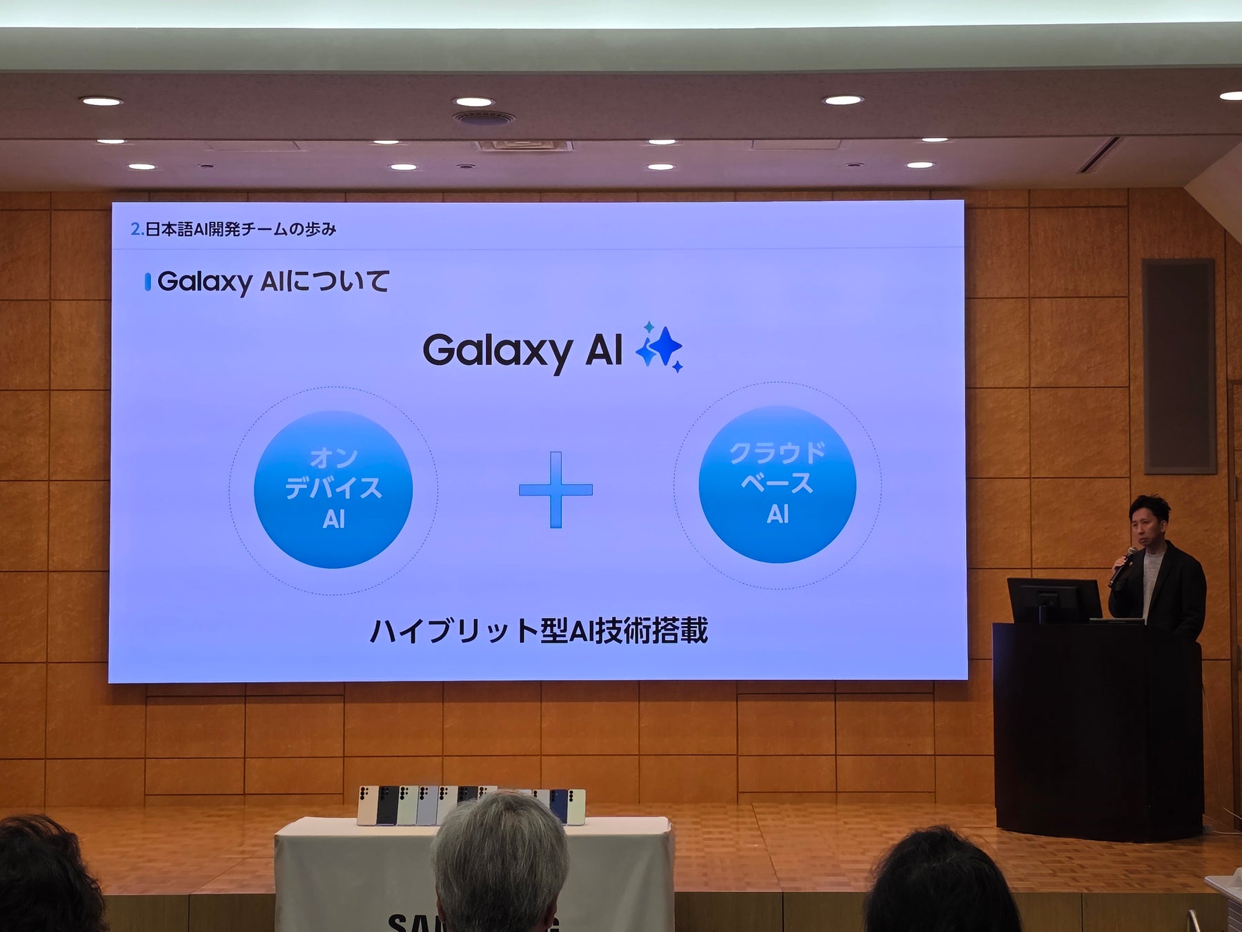 Galaxy AIは、通信不要、プライバシー保護された状態でオンデバイス処理ができる「オンデバイスAI」と、クラウドで処理する「クラウドベースAI」のハイブリッド型AIで構成されています。現在サムスンはオンデバイスAIの開発に力を入れており、特に日本語に関しては、約2年前から日本での開発を開始し、精度高い言語開発を追求し続けています。