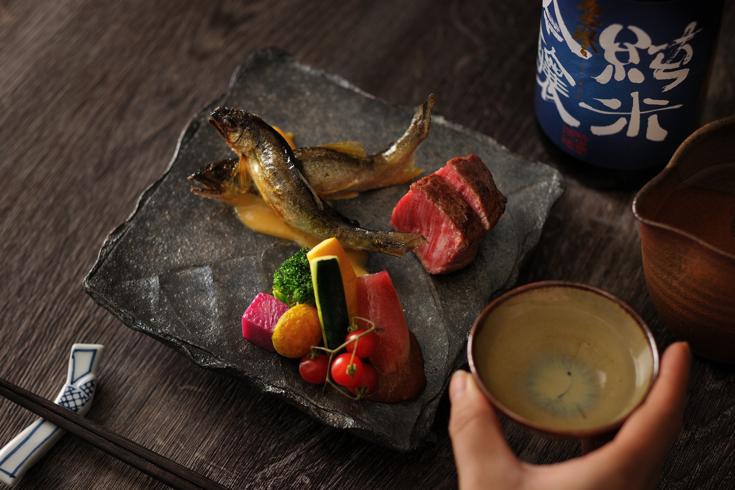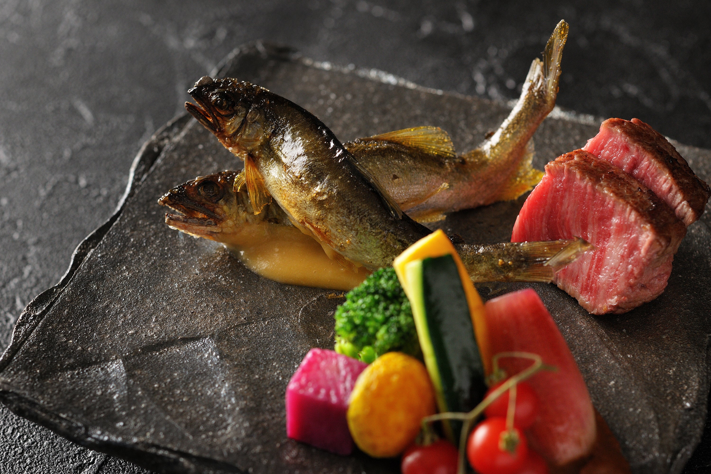 界 鬼怒川は鬼怒川の渓流に面した小高い丘の上に位置する温泉旅館です。日光白根山、男体山、那須岳などが連なる山々から水源をもつ鬼怒川は清流としても知られ、川魚の宝庫といわれています。海のない栃木県の人々にとって、川魚は貴重なたんぱく源であったとされています(*1)。その山や川をはじめとする自然の恵み、四季の移り変わりを料理でも感じてほしいという思いから、今春には「桜牡丹鍋」の提供を開始しました。この度、初夏から旬を迎える「鮎」に着目し、栃木県の一部で親しまれてきた河原石の上で調理する「石焼き」の調理法を用いた、新しい料理の考案に至りました。