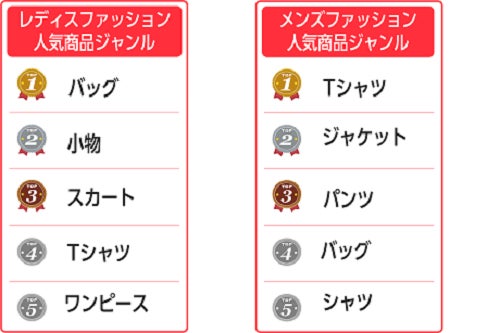 ファッション分野は20~30代の男女に人気の高いジャンルです。女性ユーザーはバッグや小物、男性ユーザーはTシャツやジャケットを好んで購入していることがわかりました。