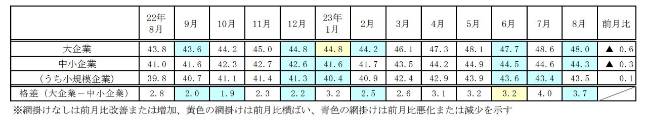 「大企業」「中小企業」が2カ月ぶりに悪化、「小規模企業」は3カ月ぶりに改善した。各規模において業種間や企業間で二極化する傾向がみられた。