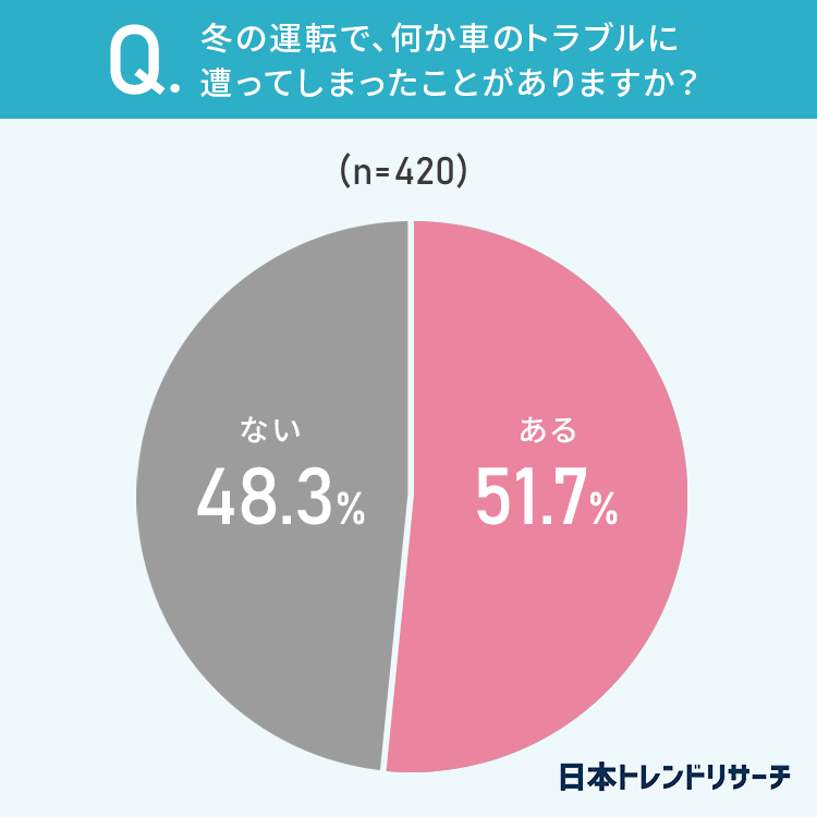 51.7%が、冬の運転で「トラブルに遭ったことがある」と回答しました。