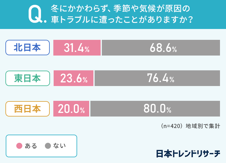 ■冬にかかわらず、季節や気候が原因の車トラブルの経験は?