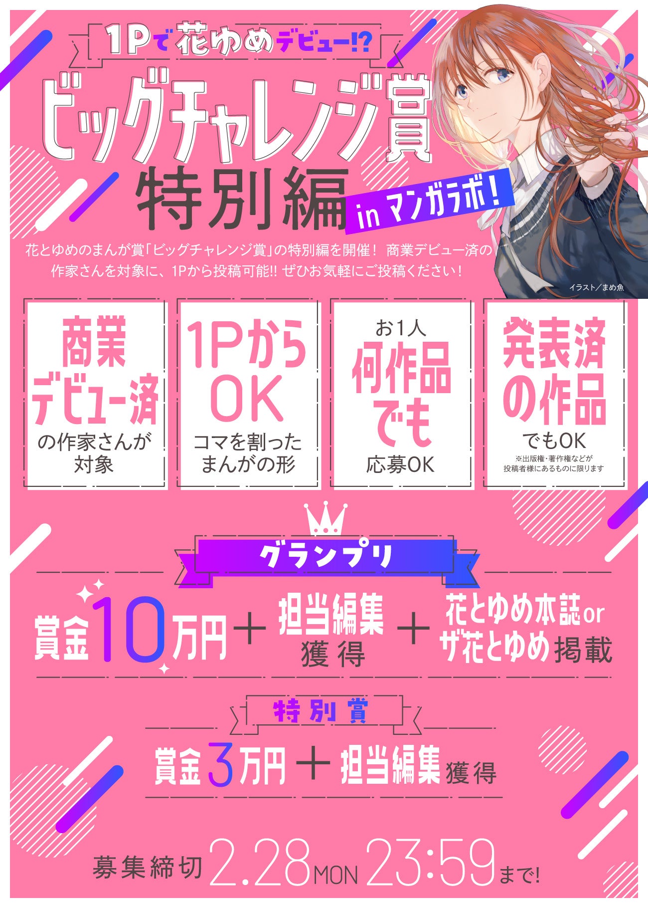 グランプリ:賞金10万円+担当編集獲得+花とゆめ本誌orザ花とゆめ掲載