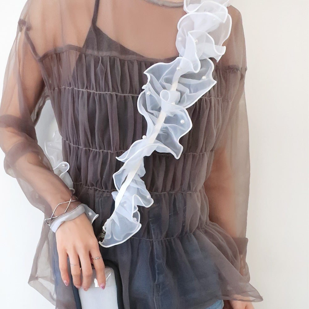 商品名:ホルダー付きスマホストラップ / パール付チュール