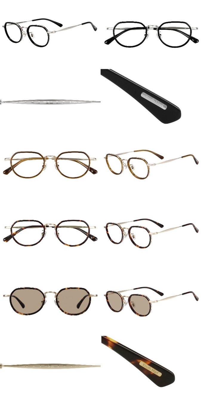 「Zoff|Knuth Marf」は、"New Glasses,New me."をコンセプトに、纏うことで新たな自分に出会えるような、メガネ、サングラスを提案します。テンプルの芯金には、アクセントとなるオリジナルモチーフの彫金入り。テンプルの側面もしくはテンプルエンドには、「Knuth Marf」のロゴプレートを配置。「Knuth Marf」の一癖あるデザインを、アイウェアの各パーツで表現しています。デザイン性高く、ファッションの一部として取り入れることで個性を引き出す、メガネ2型全6種、サングラス4型全8種、計14種のアイウェアコレクションです。