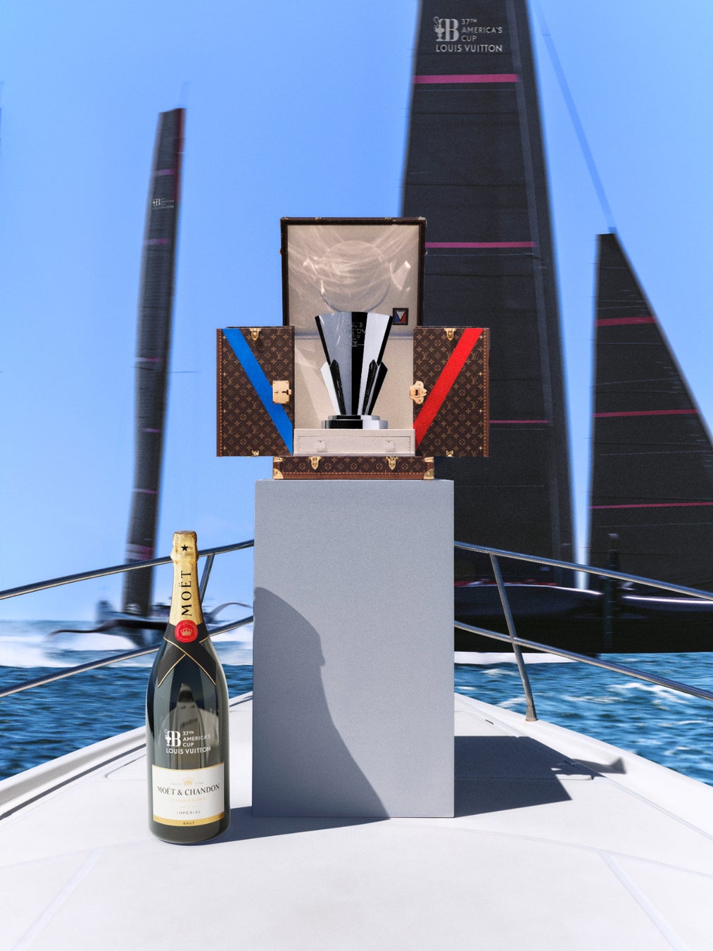 第一回の優勝以来、世界を代表する権威となったアメリカのヨットクラブ「ニューヨーク・ヨットクラブ」は、1983年に優勝杯をオーストラリアに奪われるまで、132年間保持。以降、優勝杯を手にしたチームは、アメリカ、スイス、ニュージーランドのみで、エポックとなった1983年大会は、ルイ・ヴィトンがアメリカズカップの挑戦艇を決めるレースを初めて主催した年でもありました。優勝杯(オールドマグ)とは別に、ルイ・ヴィトンが独自でトロフィーを製作・授与したことをきっかけに、以降30年以上にわたり、オフィシャルパートナーとして歴代のトロフィーケースの製作などをサポート。モエ・エ・シャンドンは優勝艇でおこなわれる祝賀イベントやプレゼンテーションにおいて、オフィシャルシャンパンを提供しています。