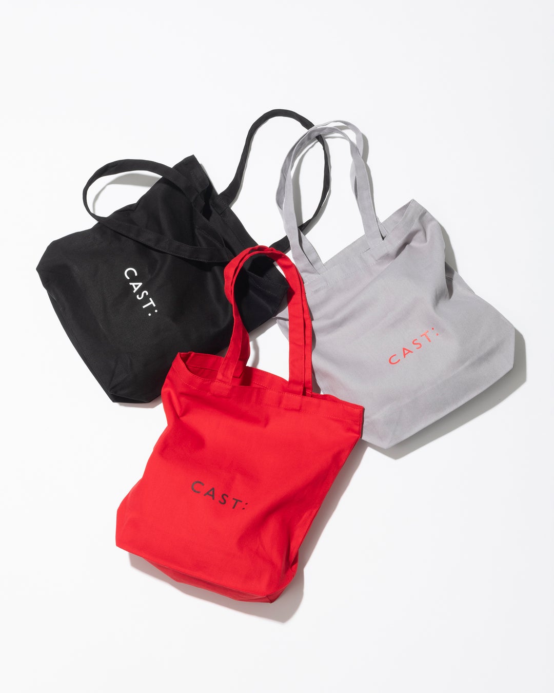 ポップアップ期間中に、1回のお会計で税込み33,000円以上お買い上げのお客さまに、先着順で実用性と洗練されたデザインを兼ね備えた「CAST:オリジナルトートバッグ」をプレゼントいたします。ブラック、グレー、レッドの3色から1点、お選びいただけます。
