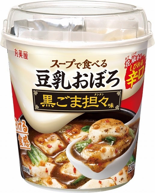 丸美屋食品工業株式会社(本社:東京都杉並区、社長:阿部豊太郎)では、なめらかでくちどけの良い食感の「豆乳おぼろ」が入った「スープで食べる豆乳おぼろ<黒ごま担々味辛口>」を、2022年7月25日(月)からコンビニエンスストアで新発売いたします。辛いものが食べたくなる夏場に、しびれる辛さを楽しめるカップスープを発売することで市場を盛り上げます。