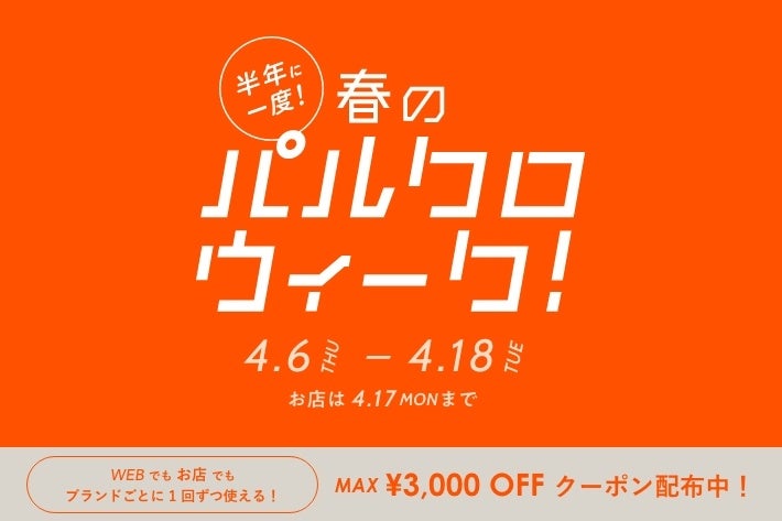4/6〜4/18(お店は4/17まで)の期間、パルグループの各店舗&パルクローゼットオンラインストアにて半年に一度のお客様感謝フェアを開催します。