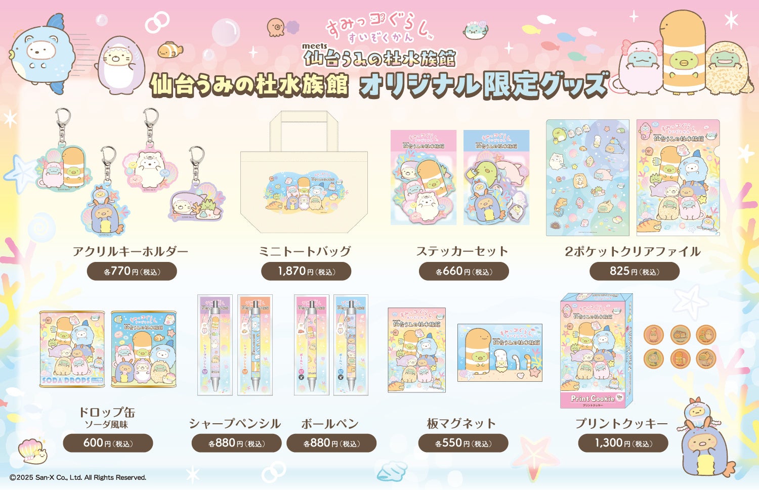 イベント開催期間中『すみっコぐらしすいぞくかん meets 仙台うみの杜水族館』限定のオリジナルグッズを販売します。