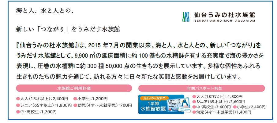 今回の施策では、大人気キャラクター「すみっコぐらし」の持つ魅力を通して、『仙台うみの杜水族館』にいる多様な生きものたちの魅力を発信する仕掛けを多数ご用意しています。さらに3月20日(木・祝)には「すみっコぐらし」人気キャラクターの撮影会を実施するなど、これまで以上に彩り豊かな水族館にしてくれる生きものの魅力を再発見する90日間をお楽しみください。