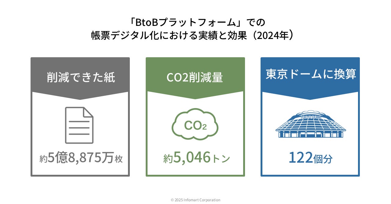 インフォマート、利用企業110万社以上の帳票デジタル化で年間約5,046トン、東京ドーム122個分のCO2排出量を削減