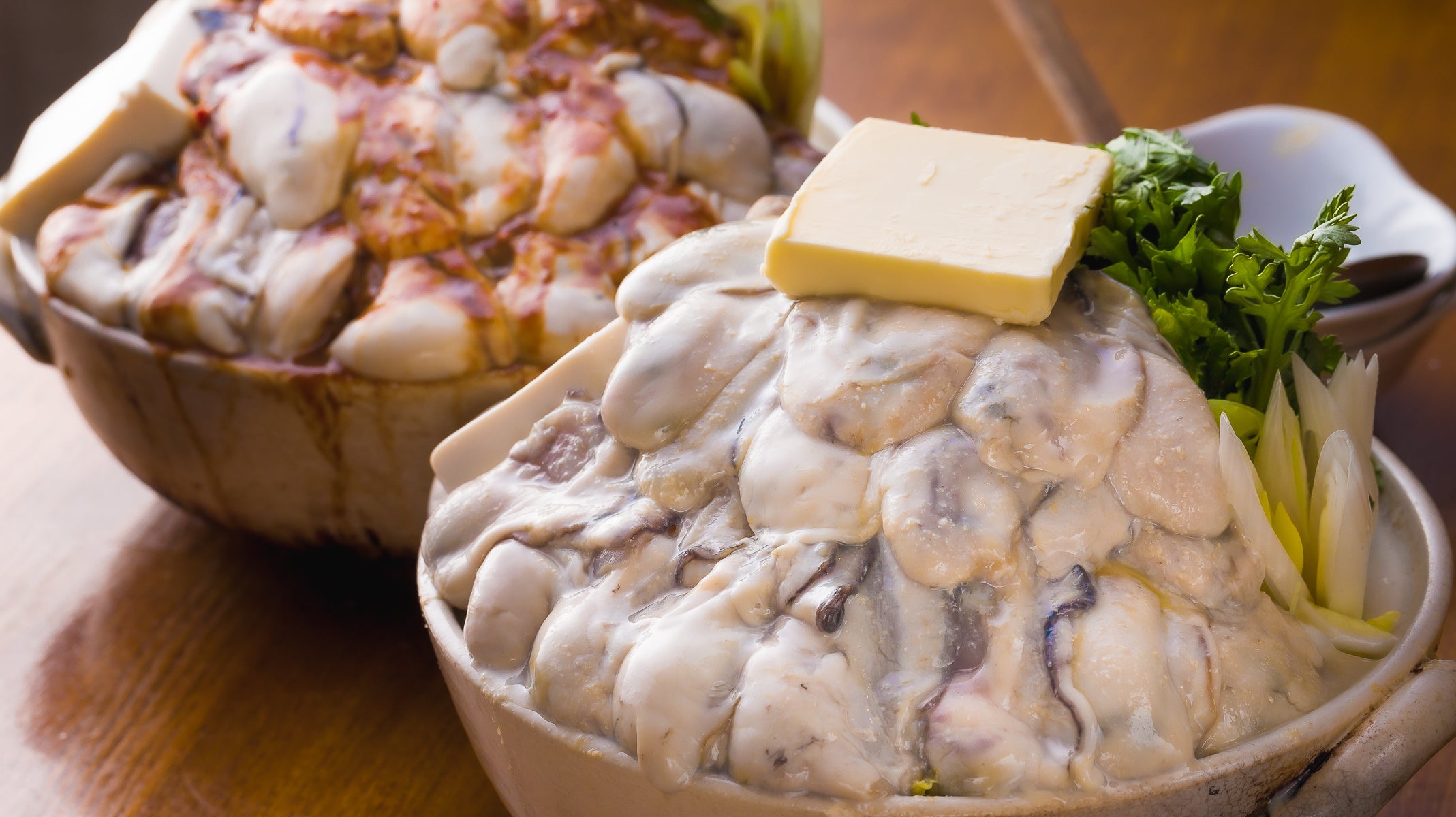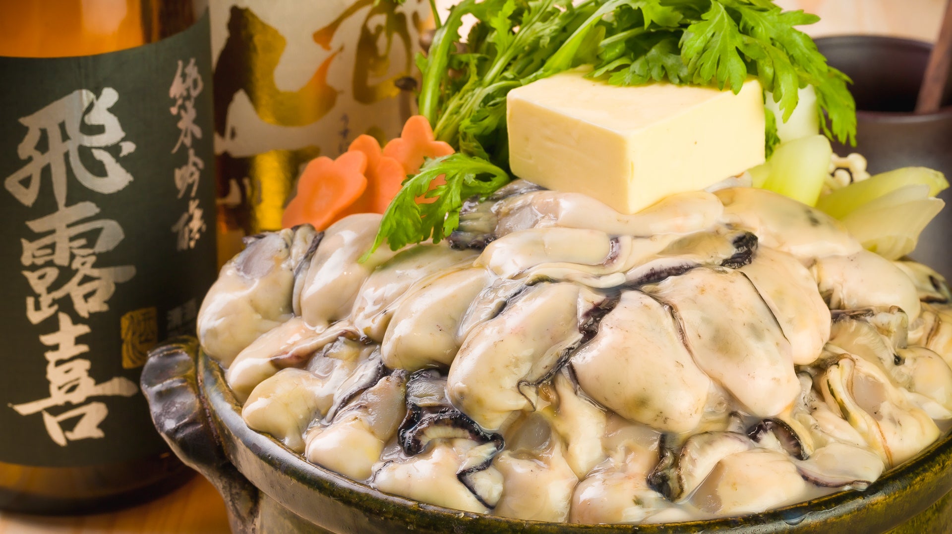 自慢の牡蠣鍋をたくさんの人に味わって欲しいから、お得なコースもご用意いたしました。その日に仕入れた生牡蠣の食べ比べやこだわりのカキフライも堪能できる“牡蠣のフルコース”は、ご友人や同僚とのお集まりや、歓送迎会などにもおすすめです。