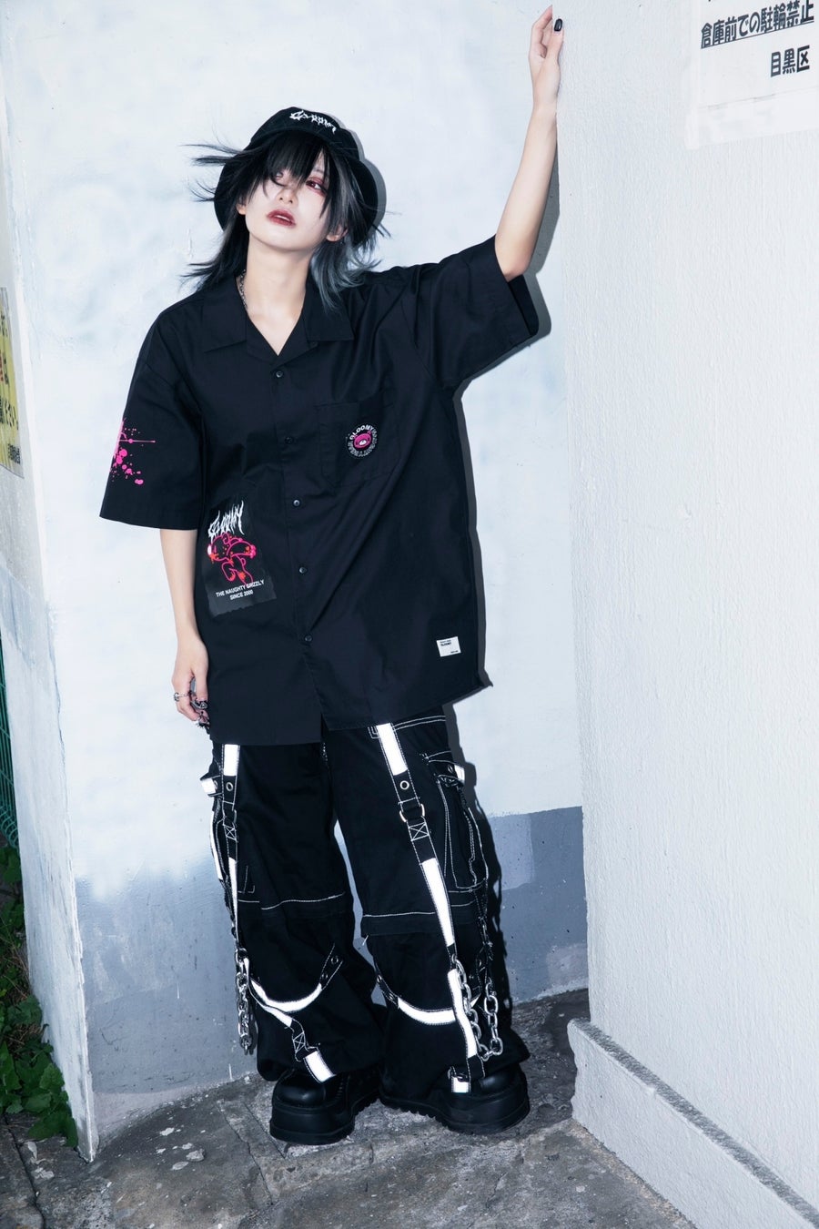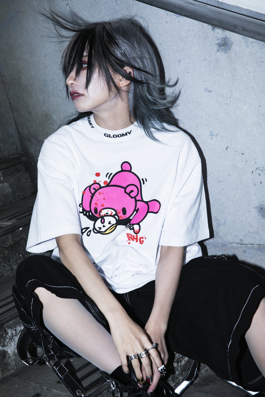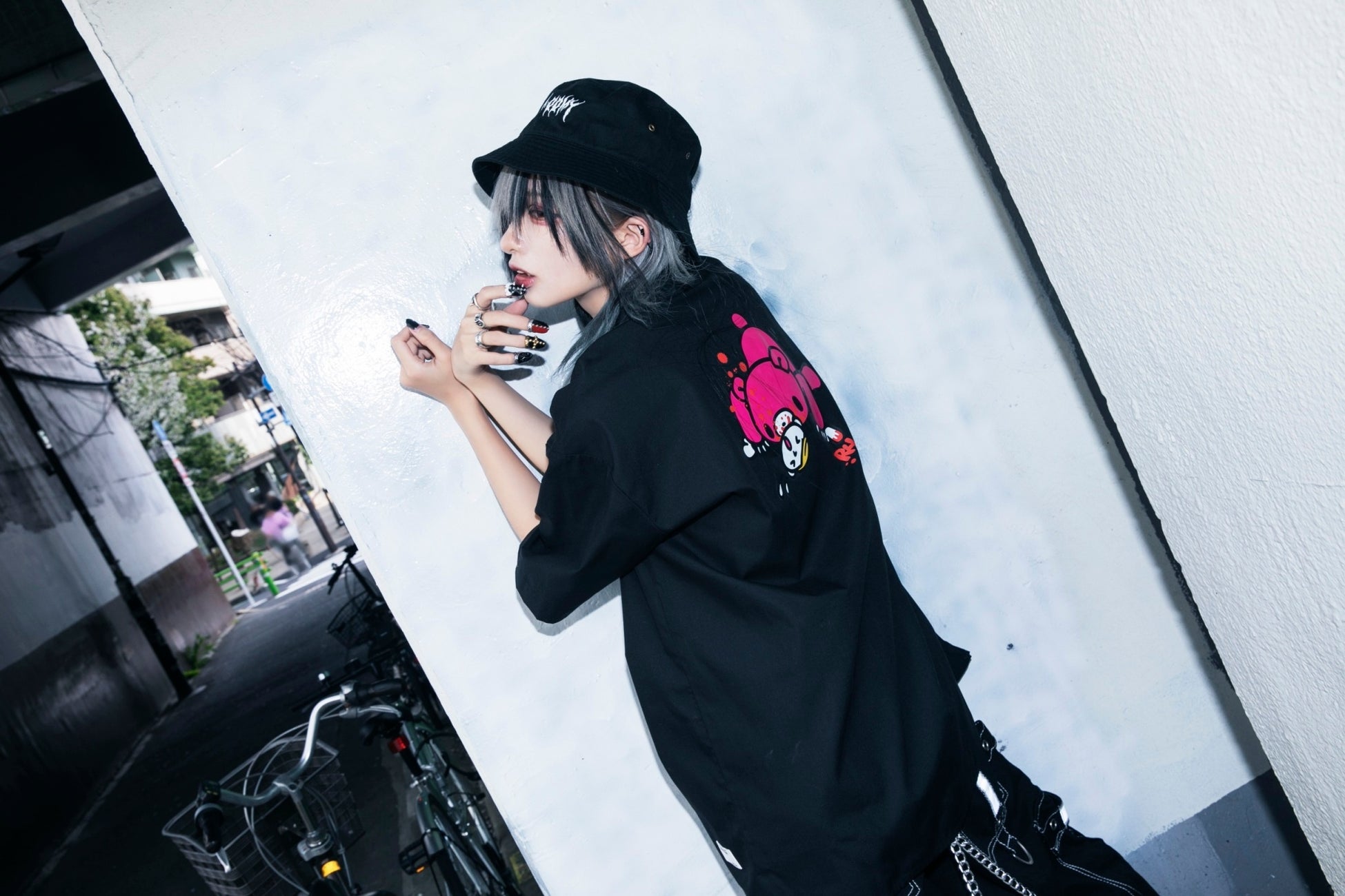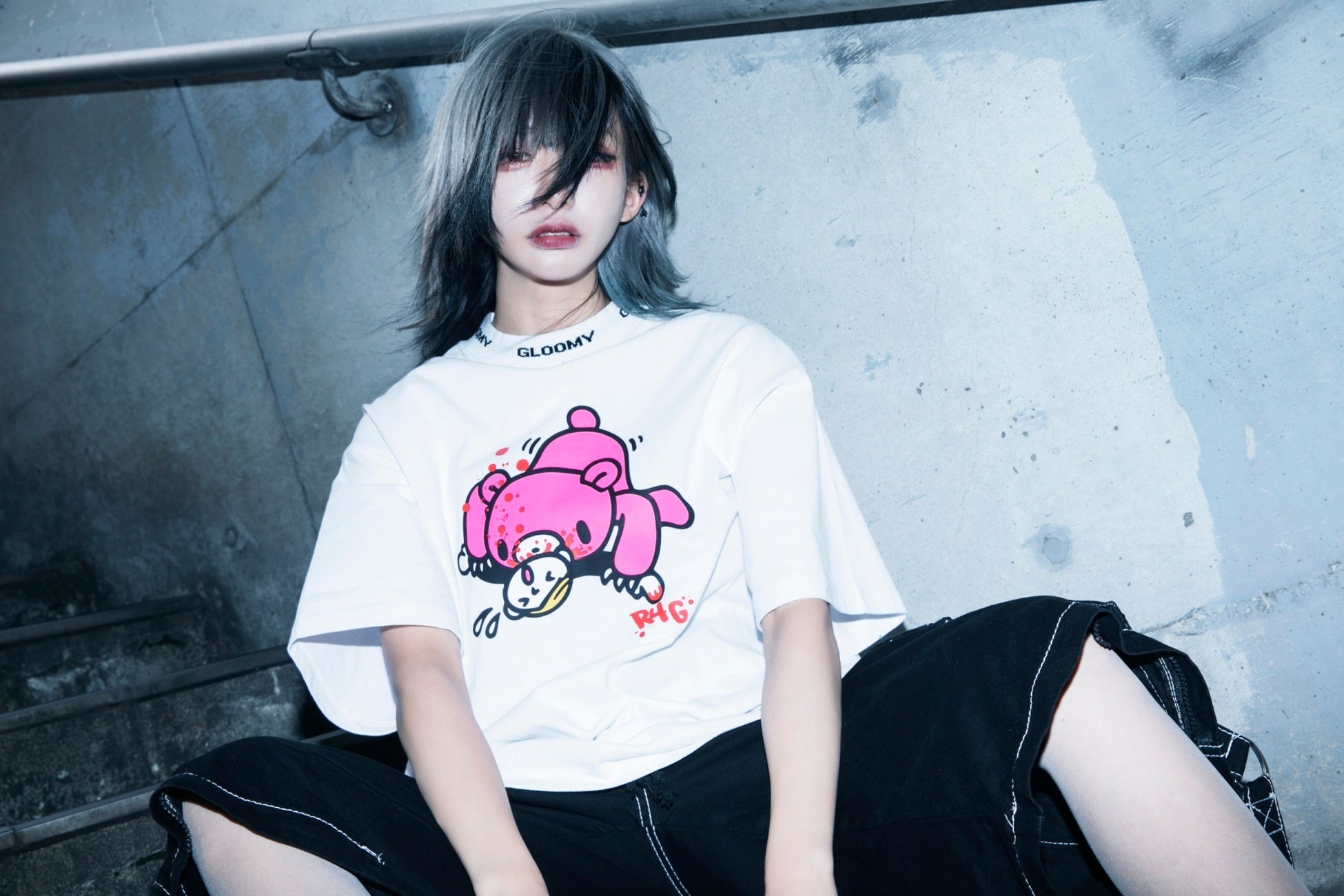 今回はバックプリントが特徴的なワークシャツや首元にGLOOMYのロゴがデザインされたTシャツ、アクリルキーホルダーがラインナップ。