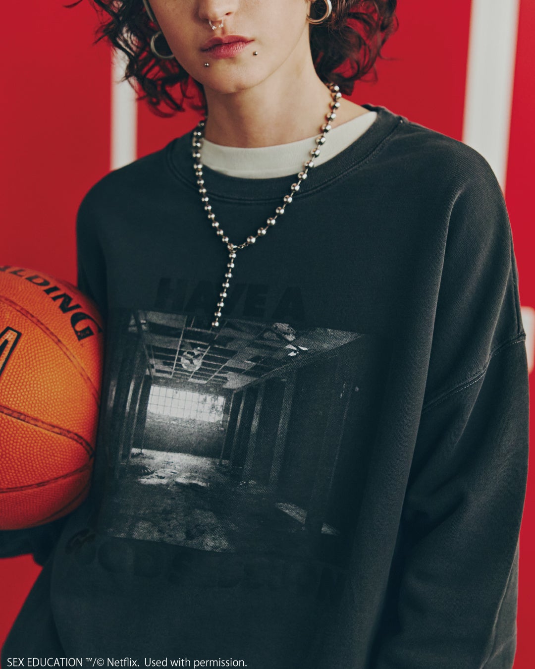 主人公メイブ・ワイリーのフォトプリントにボックスロゴをデザインした1着。