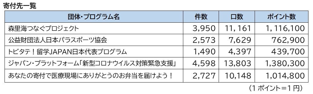 - 2021年度のポイント交換寄付実績