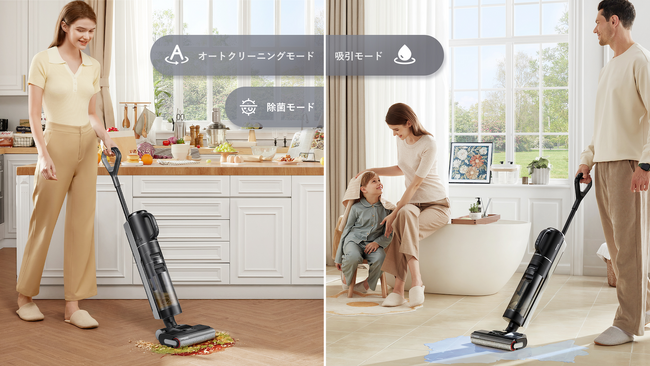 水拭き掃除機を研究する中で培われた強力な吸引力と隅々の清掃能力を実現する高性能モーターと科学的な製品設計。その中でも、Dreame(ドリーミー)独自の高性能モーターを、他のアクセサリーと組み合わせることで、1+1>2の効果が得られます。「Dreame H12 Dual」は、この高速デジタルモーター技術と製品設計の利点を活かし、水拭き掃除機とスティッククリーナーのベースにさらなるアップグレードを施し、多機能な製品として新たなラインナップに加えられます。この一台で日本の家庭全体の清掃ニーズに応えることができるといって過言ではないでしょう。