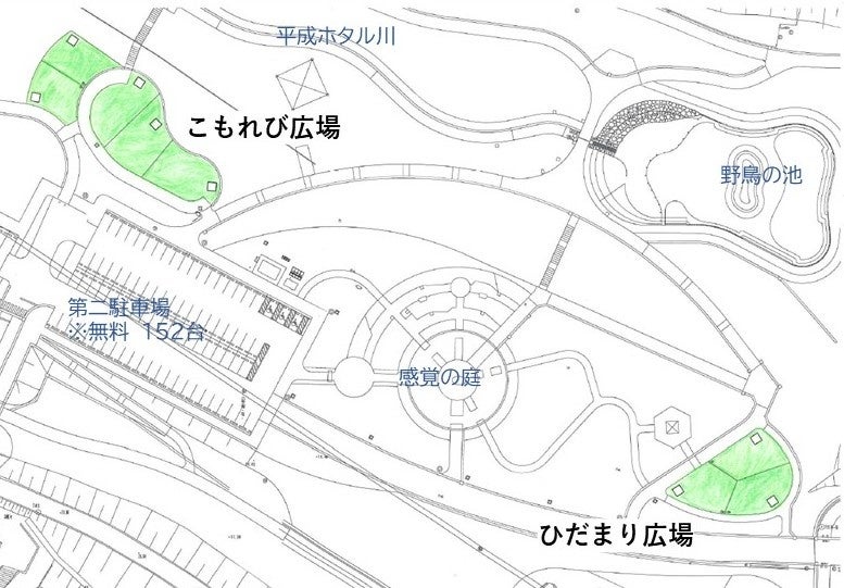 現在、稼働している「バーベキュー広場」に、新しく加わる「こもれび広場(5サイト)」・「ひだまり広場(3サイト)」とで、「大野極楽寺キャンプフィールド」として生まれ変わります。
