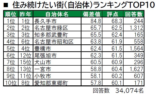 ■住み続けたい街(自治体)トップは、2年連続で長久手市