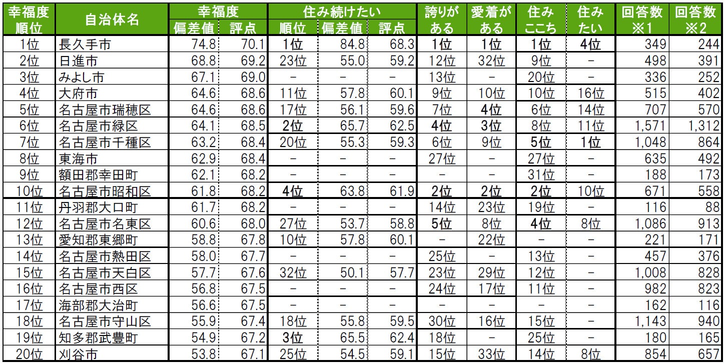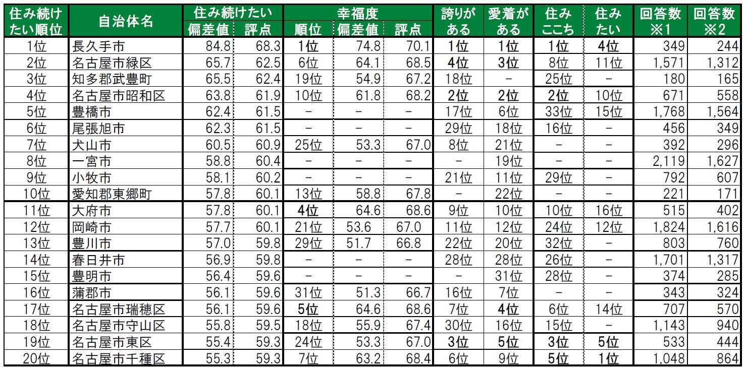 いい部屋ネット「街の幸福度 & 住み続けたい街ランキング2022<愛知県版>」(街の住みここちランキング特別集計)発表