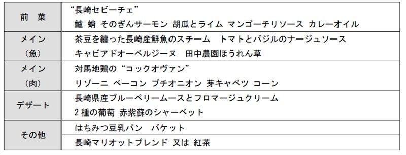 長崎で水揚げされた旬の鱸(すずき)、蛸(たこ)、本金目(ほんきんめ)をはじめ、対馬地 鶏、ながさき黄金(島原)、ビーツ(大村)、アスパラガス(壱岐)ブルーベリー (佐世保)など、長崎の豊穣な海と大地が育んだ食材に、熱い夏を乗り切るため、スパ イスやガーリックなどのエナジーアイテムを融合させた「長崎オールスターズ」の長崎 フレンチです。