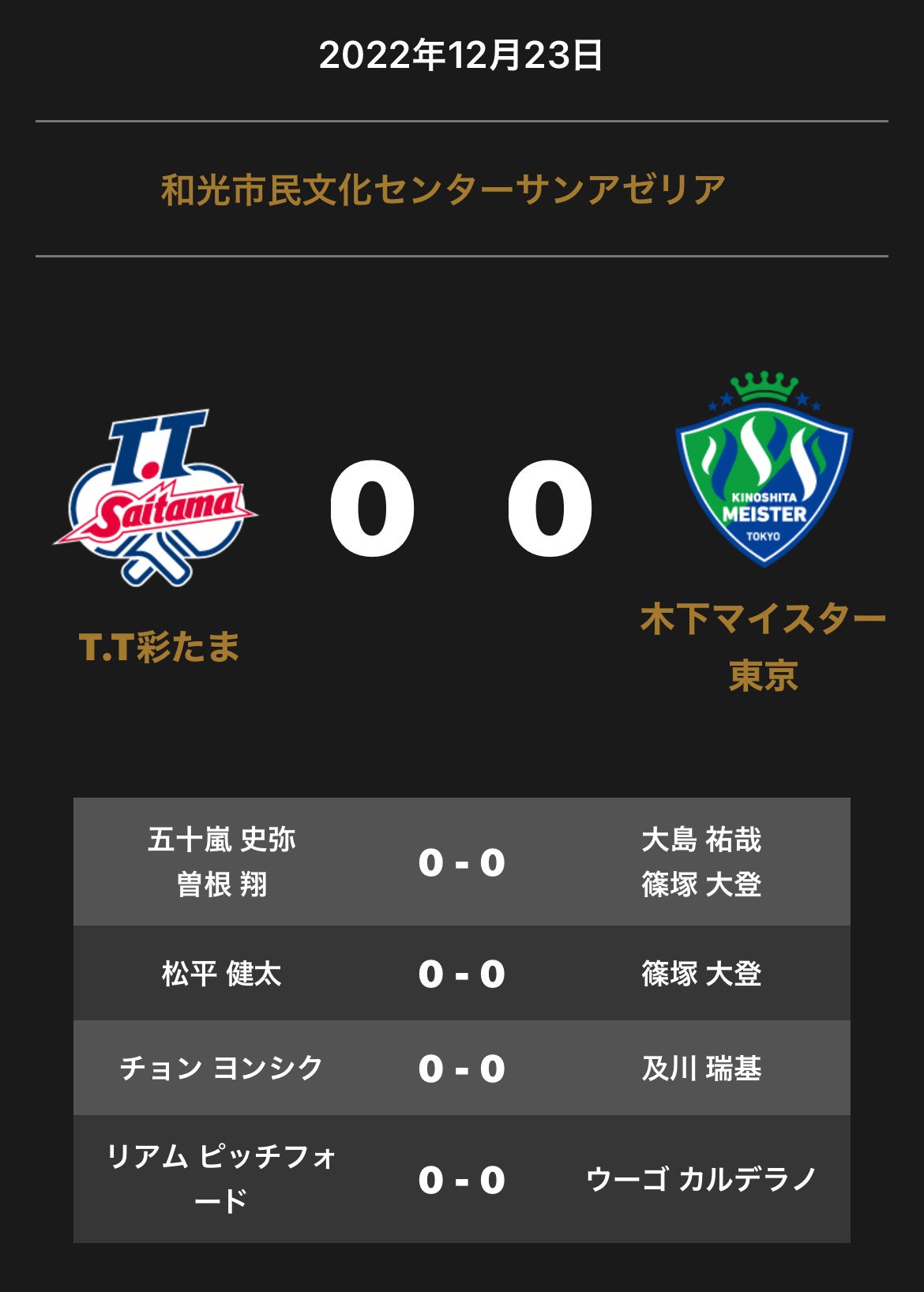 ノジマTリーグ 2022-2023シーズン 12月23日(金) 18:30試合開始 T.T彩たま vs 木下マイスター東京 対戦オーダー発表