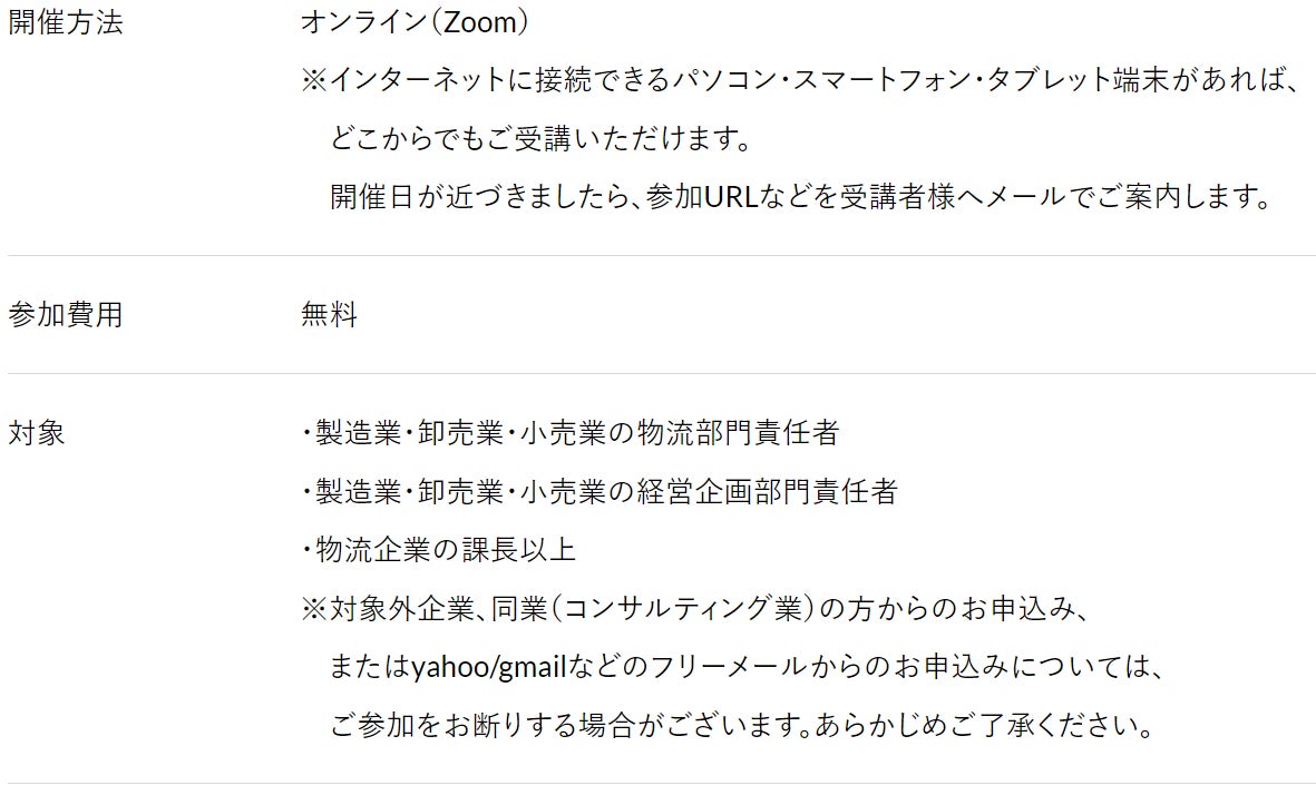 今回のセミナーでは立ち上げ開始から倉庫運営を安定化させるための施策について、具体的なノウハウをご紹介します。入荷・出荷業務といった具体的な運用改善手法の紹介を通じて具体的な倉庫オペレーションに関する安全や物流品質向上に役立てていただければと考えております。