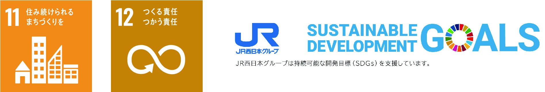 JR西日本ホテルズは、持続可能な開発目標(SDGs)を持ち、地域と共に、お客様一人ひとりの豊かな人生を広げます。今回ご案内の取り組みは、SDGs 目標の11番、12番に貢献するものと考えています。