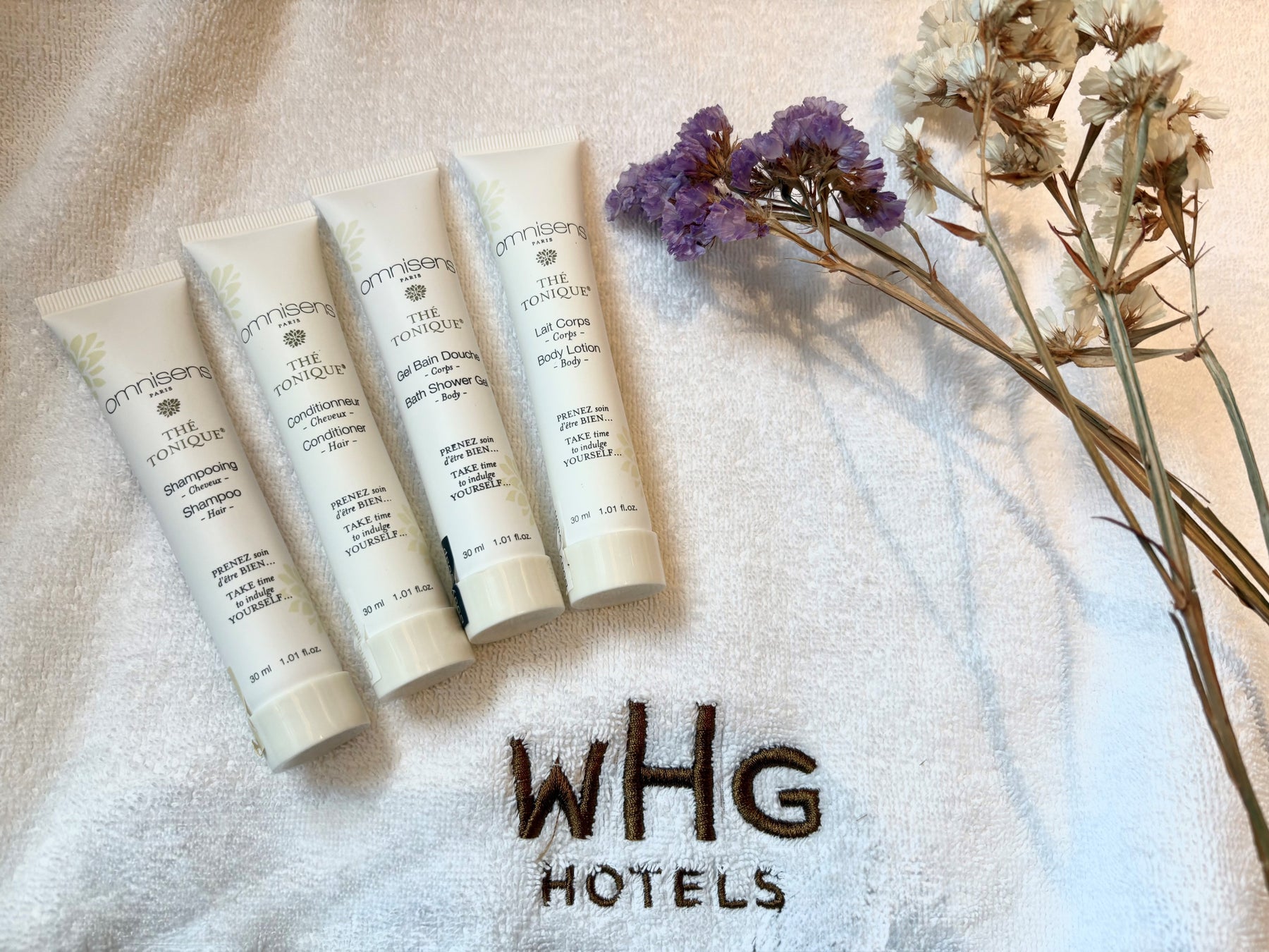 当ホテルでは、お客さまに至高の癒しと快適な時間をお届けするため、客室内のアメニティにおいてもこだわりを持っております。今回、導入したアメニティブランド「Omnisens Paris」は、フランス北西部のブルターニュ地方の海洋深層水、植物由来の成分等を原材料とした自然派コスメです。天然由来の成分を使用しているため頭皮やお肌に優しく、自然の香りや滑らかで心地よいテクスチャーによる、リラックス効果が期待できます。国内高級スパでも採用されており、ホームユース、ホテルアメニティとしても人気のある製品で、洗練されたデザインは客室に上質な空気感を醸し出します。さらに、環境に配慮したリサイクル可能なパッケージを使用しており、未来に優しいサステナブルな取り組みを実現しています。