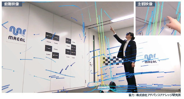気流シミュレーション結果を現実空間にビジュアル化し空気の流れを体感