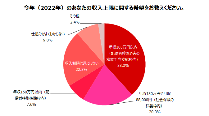 - 今年(2022年)の収入上限 「103万円以内」38.3%、「収入制限は気にしない」22.3%