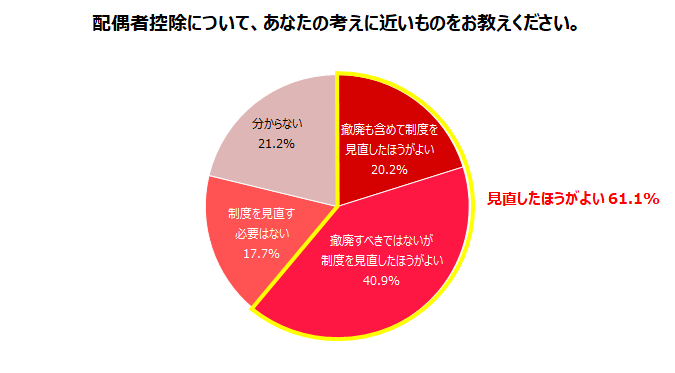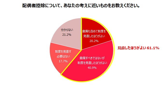 【主婦・主夫層に聞く】配偶者控除「見直したほうがよい」61.1%|今年の収入上限予定、実際のところは・・・「103万円以内」38.3%、「収入上限は気にしない」22.3%