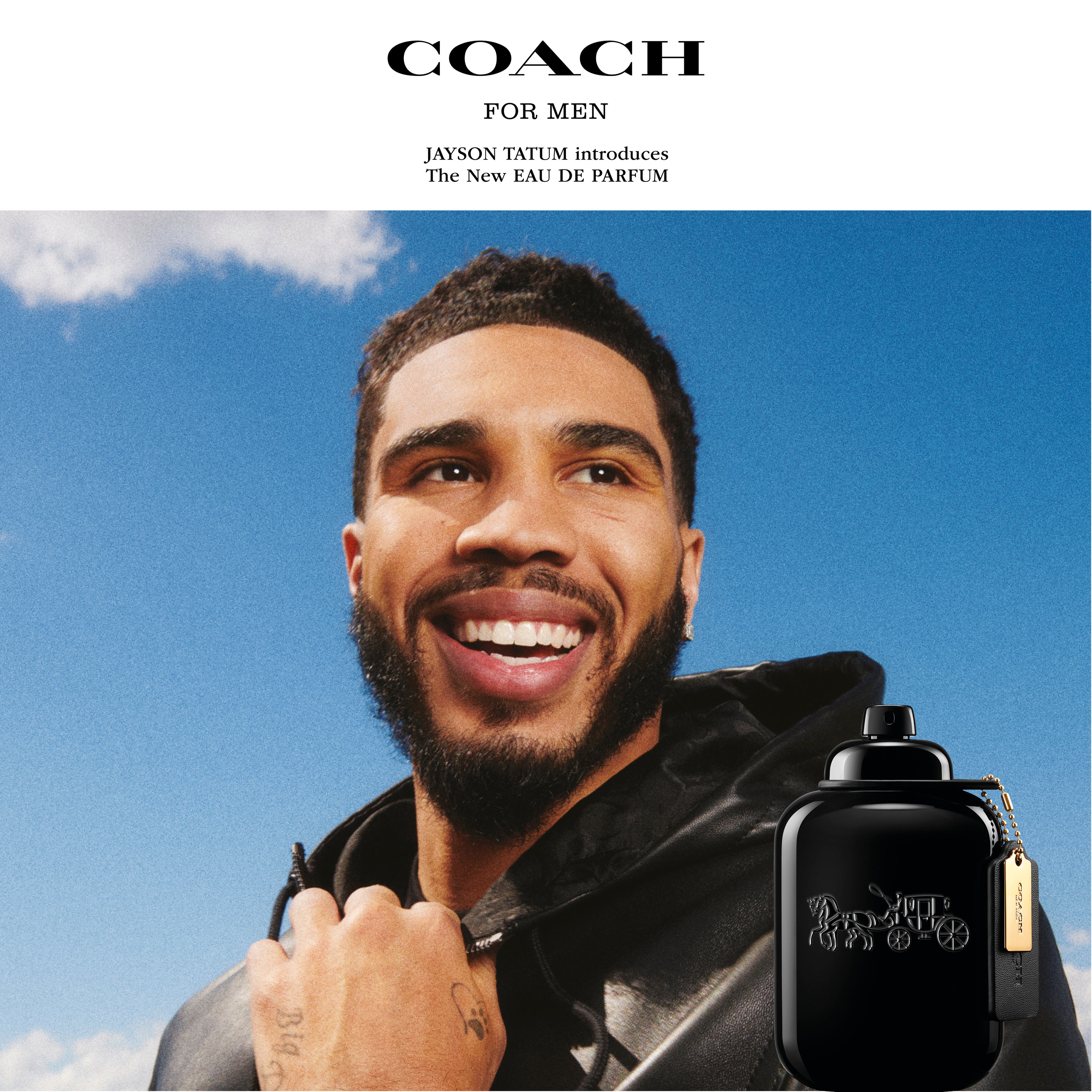 コーチ メンズフレグランスの顔を務めるのは、米国バスケットボール界のスター、ジェイソン・テイタム。大胆で表現力豊かなブランドのスピリットを体現するスタイルアイコン。スポーツ界のヒーロー、トレンドセッター、そしてカルチャーをけん引するインフルエンサーでもある彼は、「コーチ マン」のアクティブな側面を反映しています。