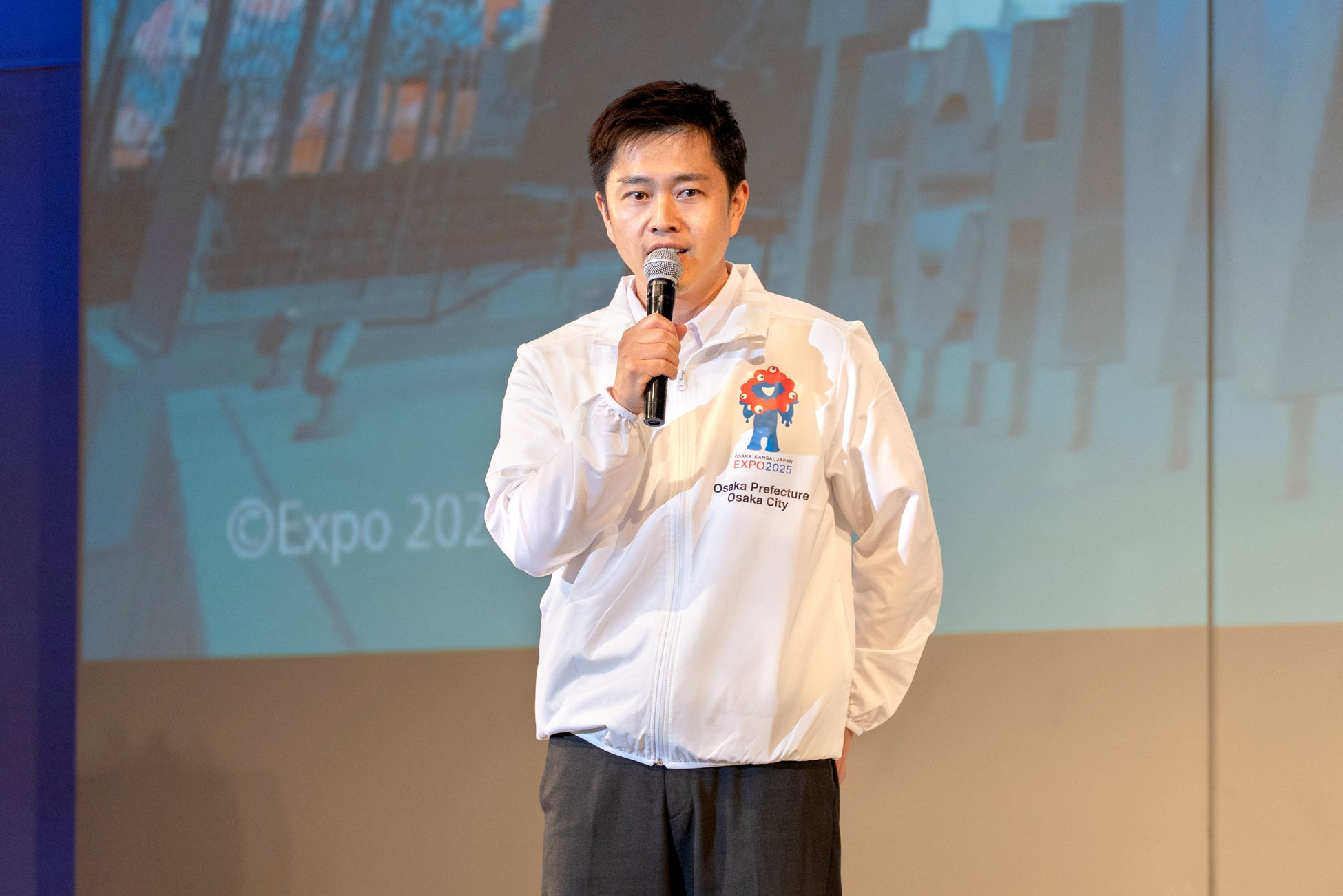 当日はパーク内の特設会場に協賛各社から約 400 名が参加。チャリティ・サイレント・オークション、大阪市や公益財団法人大阪府育英会からの感謝状贈呈や寄付セレモニーが行われたほか、吉村洋文 大阪府知事もサプライズ登場!「今日は皆さまに御礼をお伝えしにまいりました。お越しになられている沢山の協賛企業さまから多額の寄付をいただき、2009年からこれまで合計180名の高校生が大学に進学することができました。この奨学金を活用させていただいて、自分の夢を叶えた若者がたくさんいます。ここにいる皆さまのおかげです。本当にありがとうございました」と賛同していただいた皆さまへの感謝と、当社のチャリティ活動についてメッセージを述べられました。