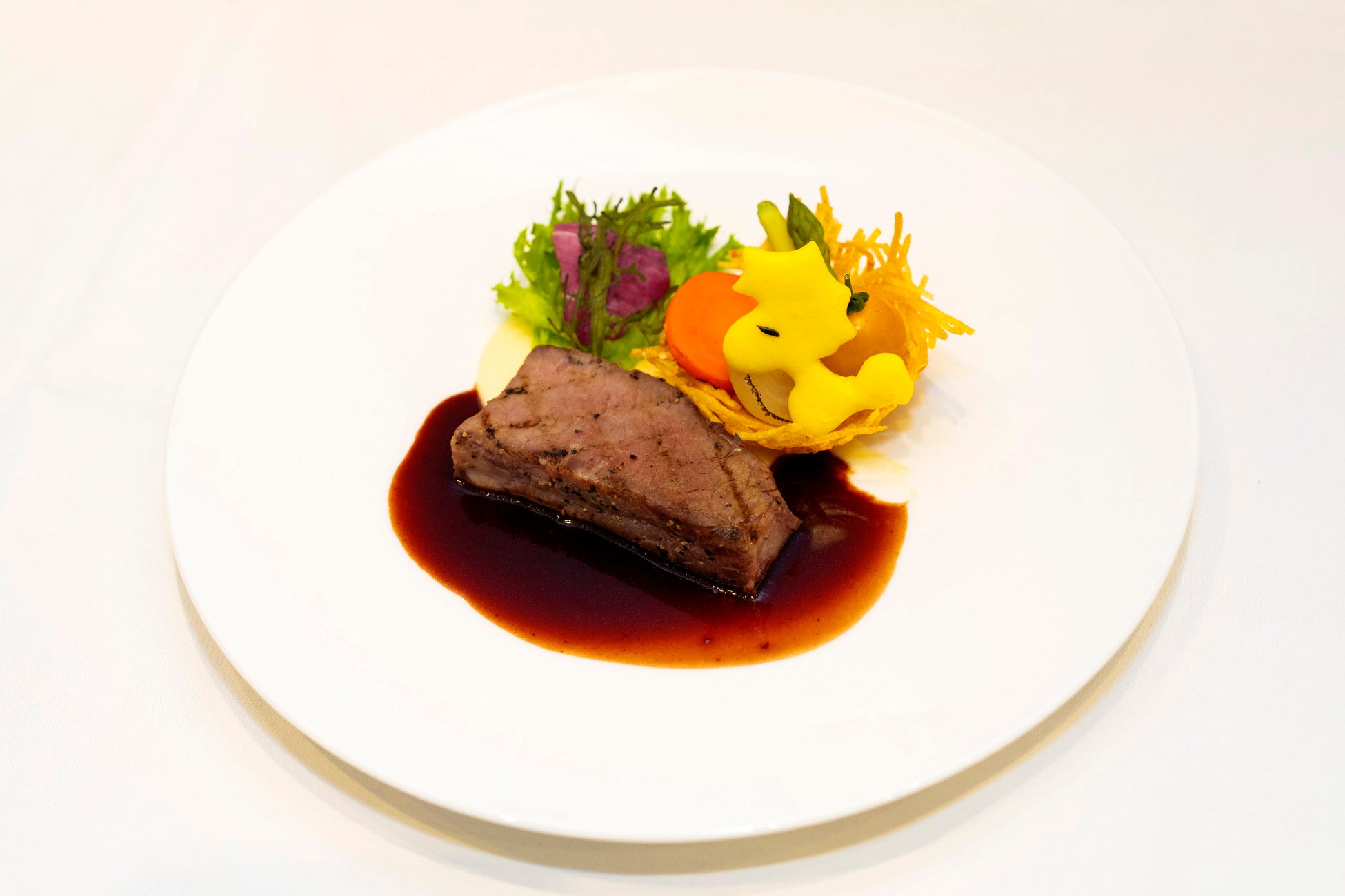 本年はパークの仲間である「ピーナッツ」の生誕75周年を記念し「Universal Wonder Night with PEANUTS」として、初のコラボレーションを実施しました。グリーティングやオープニング・ショーなどの各プログラムへの登場はもちろん、今回は「ピーナッツ」の仲間たちをイメージしたこの日だけのディナーコースを特別提供。おいしいのはもちろん、見た目もかわいらしく精巧にデザインされた、特別なメニューを提供しました。お食事の時間中も参加者のテーブルからは感嘆の声が上がるなど、この夜だけのスペシャルな「ピーナッツ」全面コラボレーションにより、イベントは大いに盛り上がりました。