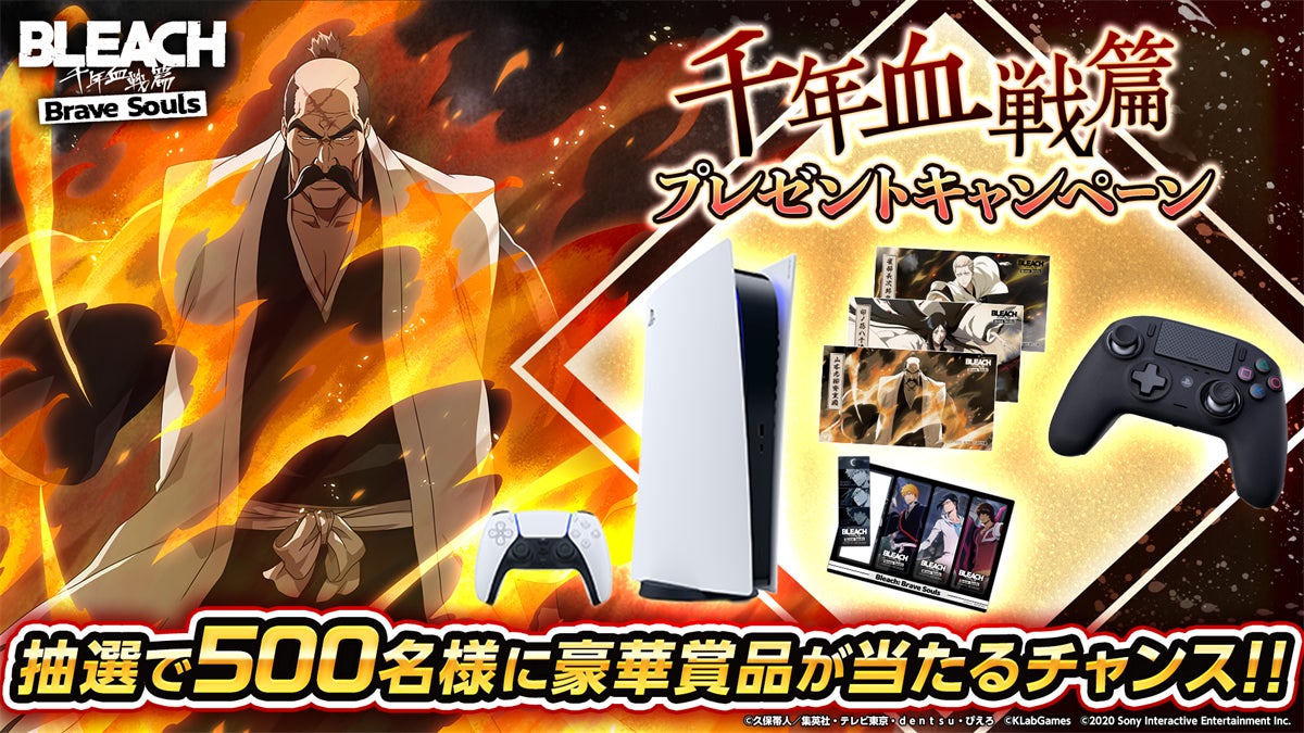 貯めたポイント数に応じて、500名様にPlayStation®5や千年血戦篇のブレソルオリジナルグッズなどの豪華賞品が当たる抽選に参加できます。