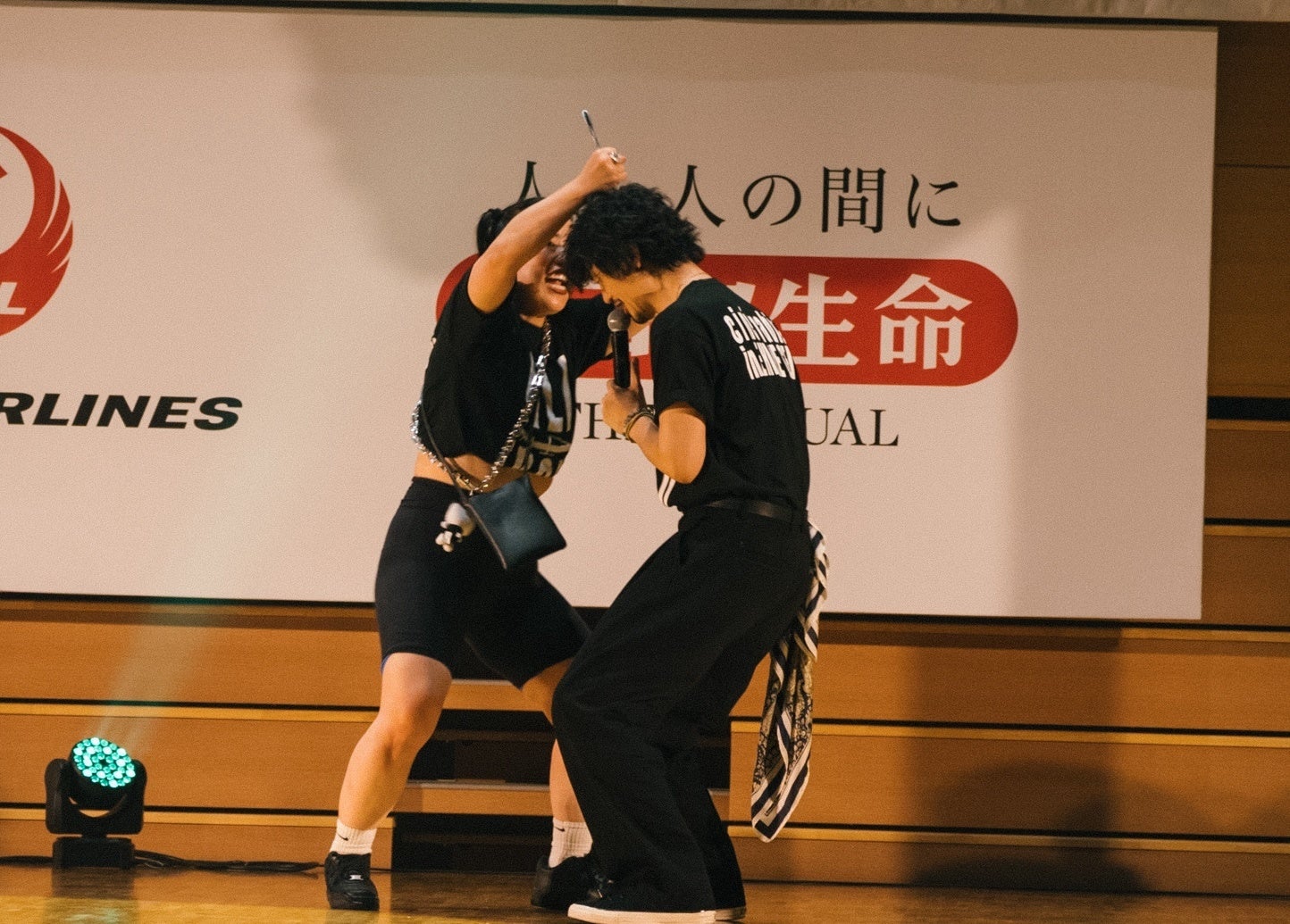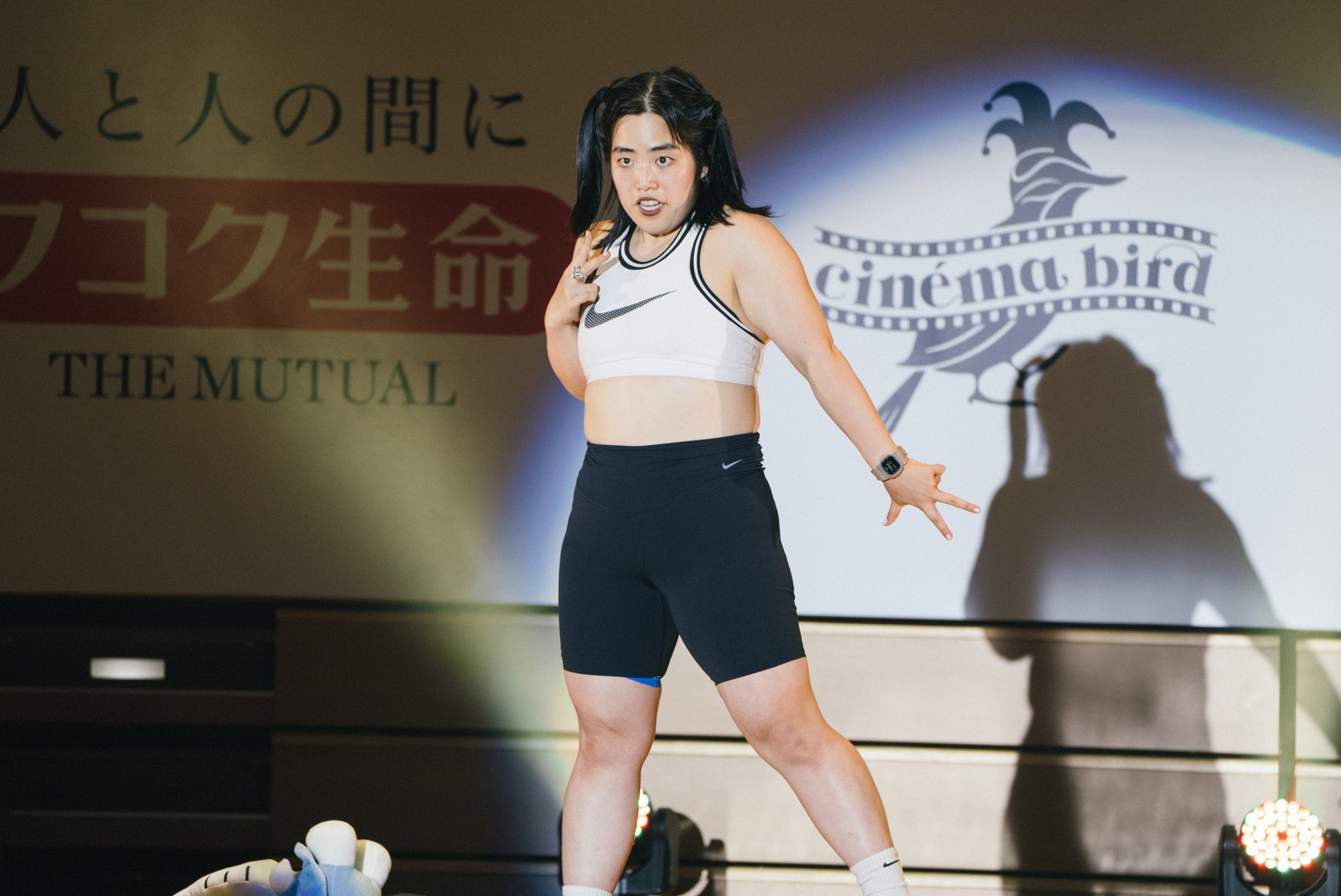 次に登場したのはcinéma bird常連の永野。自身の代表する「ラッセン」のネタでは、初めて観客をステージに招き入れコラボレーション!登壇した3名は、即興にも関わらず完璧な振り付けで観客は大盛り上がりを見せました。