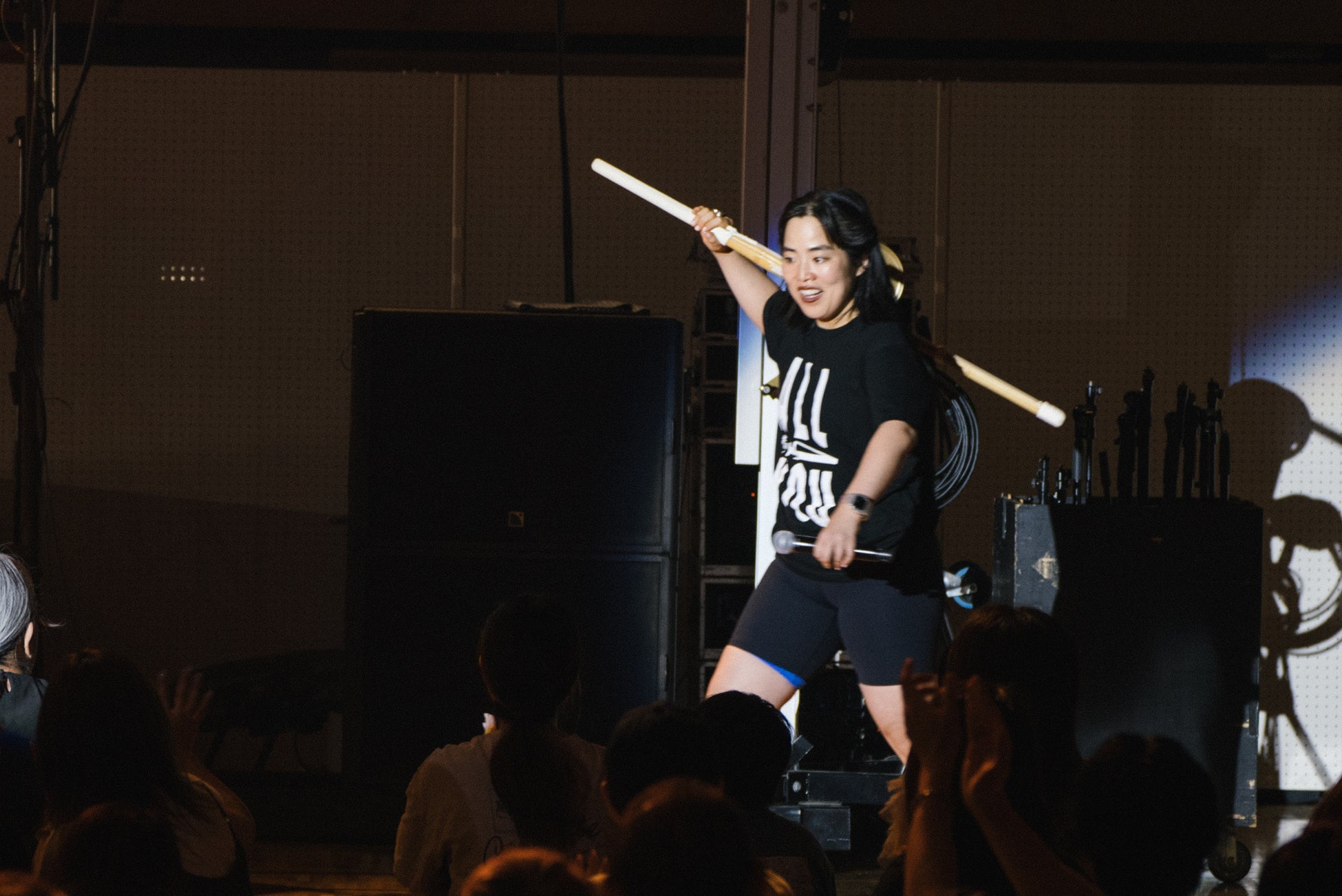 お笑いライブの最後に登場したのは、今月19日からNetflixにて世界独占配信開始となり、国内ランキング1位を奪取するなど大ヒットを記録している「極悪女王」で主演を務め話題沸騰中のゆりやんレトリィバァ!ドラマさながらの黒のリップを施したメイクに、竹刀を振り回して登場するも、まさかの「かわい〜!」と大歓声が巻き起こりました。小ボケを軽快に取り入れたトークを繰り広げたり、ものまねを多数披露し、会場は爆笑の渦に包まれました。