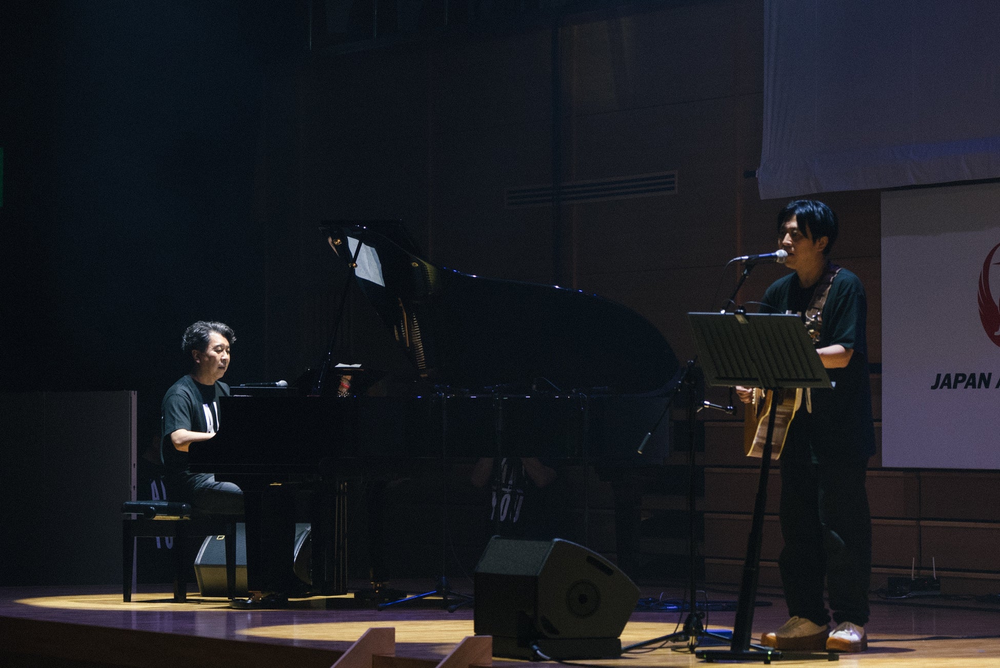 恒例のウェルカムソングはcinéma birdsの齊藤工と豪起が担当。今まで実施したcinéma birdのダイジェスト映像をバックに、齊藤工の甘い歌声と豪起の力強い歌声で来場者をお迎えしました。スペシャルゲストによるライブには、今年1月24日にリリースしたアルバム『Trinfinity』のジャケットを齊藤工が撮影するなどで親交のある世界的ジャズピアニスト小曽根真が、3月に開催したcinéma bird in 石川県 志賀町 2024に続き登場!「僕がソロパフォーマンスの時、パートナーは観客の皆様。皆様からのエネルギーを受けて演奏につながる。今日の皆さんは最高のパートナーでした。大変な思いをされたと思いますが、心に響いていたら嬉しい。頑張りましょう!」とエールを送り、心躍るような楽曲「Gotta be Happy」を軽快に、そして心が洗われるような楽曲「Where do we go from here?」をしっとりと奏で、世界レベルの演奏に会場は酔いしれました。