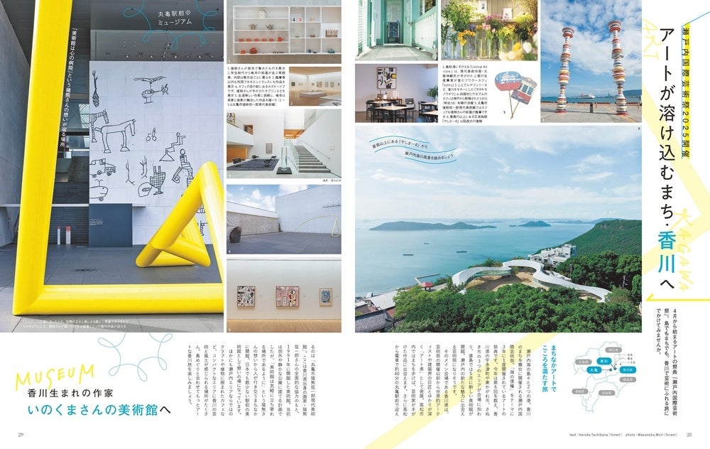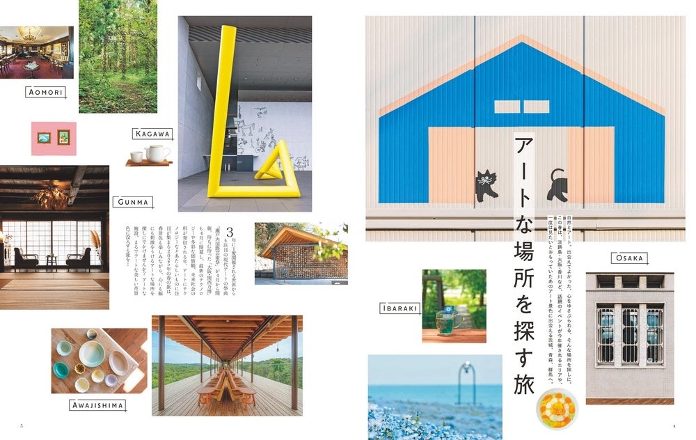 2014年の発刊から<街のいいところを見つける 旅のきっかけマガジン>としてお届けしてまいりました「ことりっぷマガジン」、最新版である44号のテーマは「アートな場所を探す旅」。2025 年春に開幕予定の「淡路花みどりフェア」「大阪・関西万博」「瀬戸内国際芸術祭」。巻頭ではこうしたイベントをきっかけに現地を訪ねたり、周辺の美術館や春らしい花景色がある場所をめぐる旅をご提案しています。