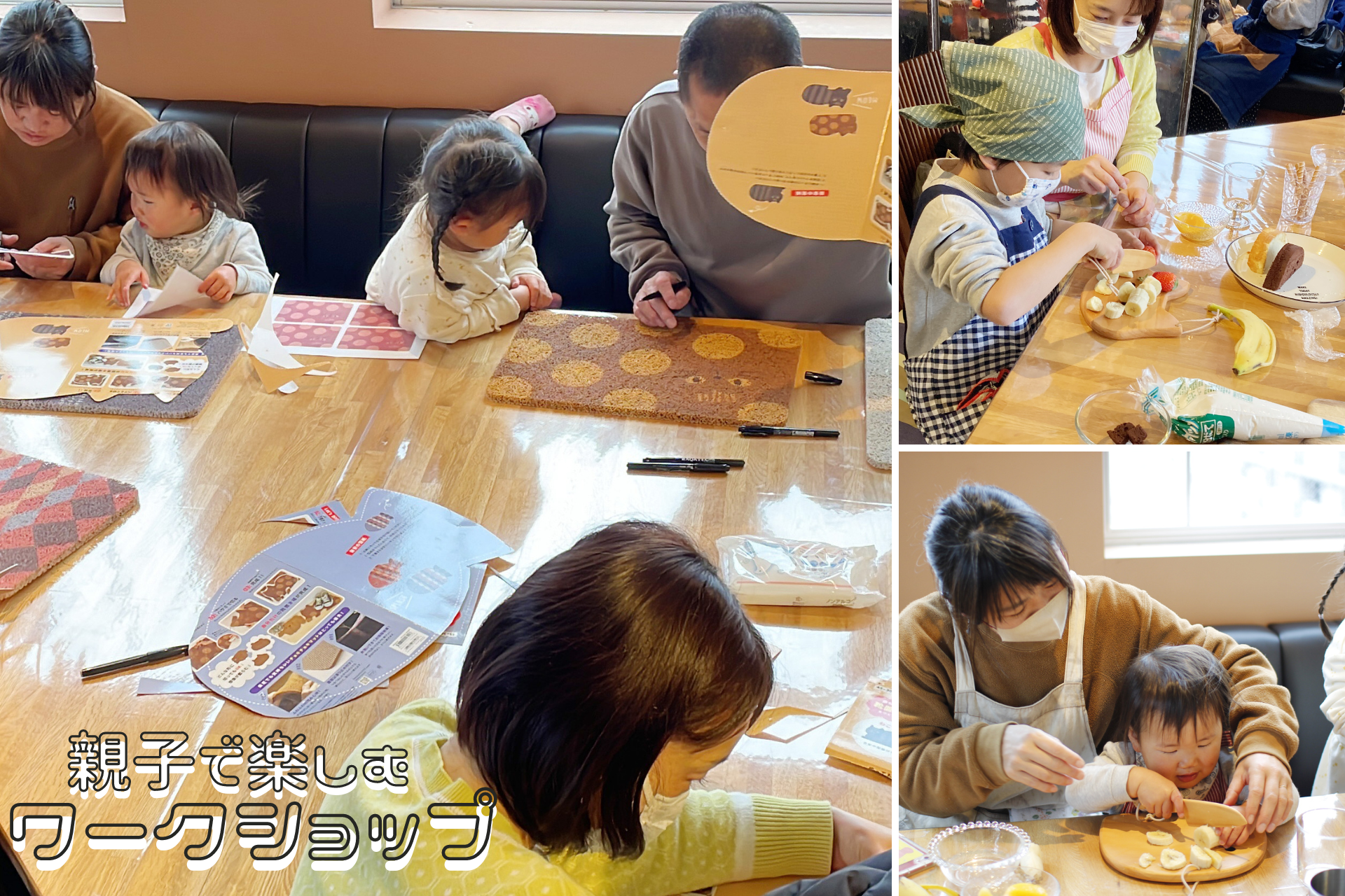 当社では、親子の絆を深めながら楽しめる知育アイテムを多数取り揃えております。その中でも、今回は「切っても楽しいふわふわチョキチョキマット」と「プチママン キッズウッドナイフ&カッティングボードセット」を取り入れ、楽しいワークショップを2024年2月23日(金)に名古屋市天白区のカフェ&フラワーCOTTONY3Fにて開催しました。
