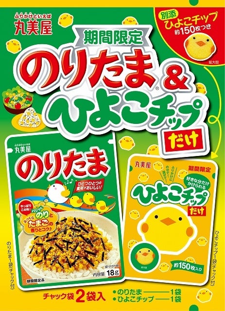 丸美屋食品工業株式会社(本社:東京都杉並区、社長:阿部豊太郎)では、定番のふりかけとかわいいチップが入った「期間限定 のりたま&ひよこチップ」「期間限定 味道楽&おさかなチップ」を2022年8月4日(木)~2023年3月31日(金)までの期間限定で発売します。