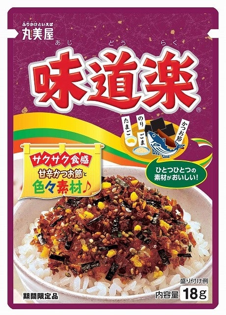 「味道楽」:サクサク食感の鰹節と海苔、たまご、胡麻を絶妙なバランスでブレンドしたふりかけです。