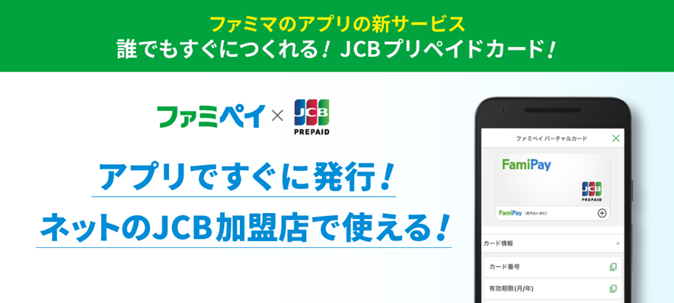 ファミマのアプリ「ファミペイ」の新サービス 誰でも!アプリで!すぐに!JCBプリペイドカードがつくれる!年会費無料・発行手数料無料・審査なし